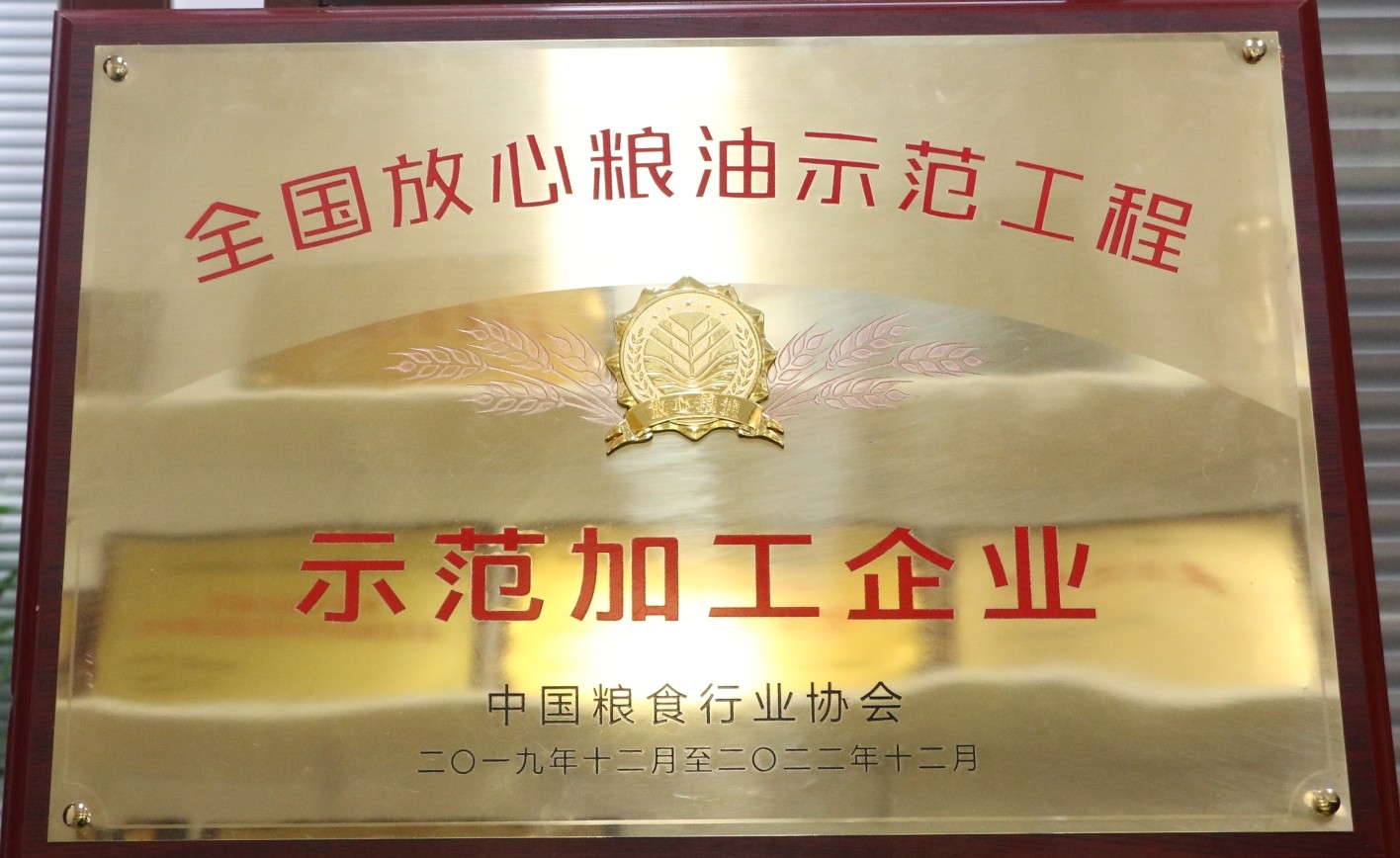 • 2019年被評(píng)為全國(guó)放心糧油示范工程示范加工企業(yè)