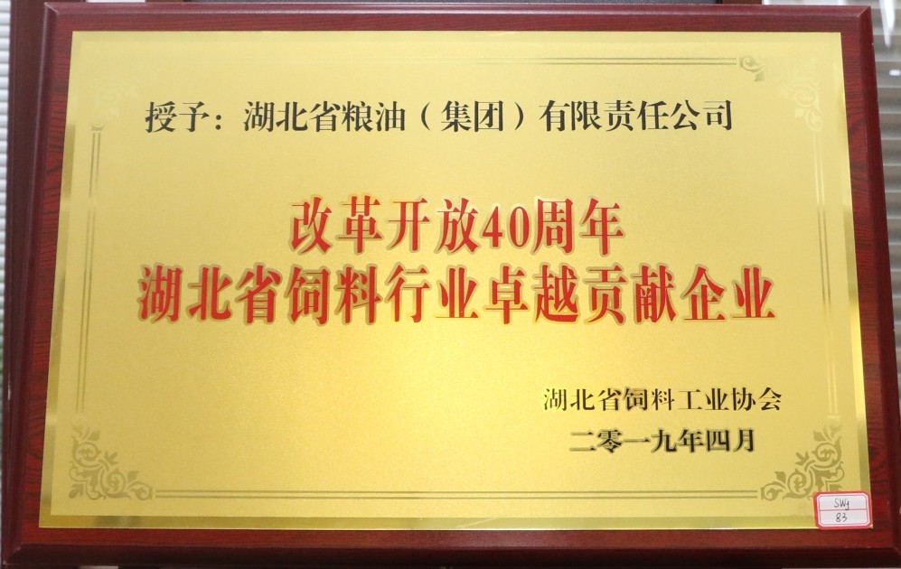 • 2019年被評(píng)為改革開(kāi)放40周年湖北省飼料行業(yè)卓越貢獻(xiàn)企業(yè)