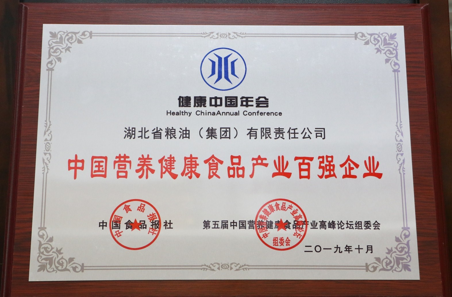 • 2019年榮獲中國(guó)十佳糧油集團(tuán)、中國(guó)百佳糧油企業(yè)稱號(hào)