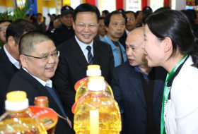 展會首日,省人民政府副省長甘榮坤等領導親臨展位視察,甘省長在認真聽取糧油集團副董事長莫亞雄對展臺產品的介紹后,對集團旗下“康宏稻嘉”系列大米、“白玉”面條及“中昌”食用油等系列產品高度關注,要求糧油集團充分發(fā)揮國有糧食企業(yè)主渠道作用,繼續(xù)做大做強,同時保障食品安全,倡導健康消費意識并做好示范帶著作用。