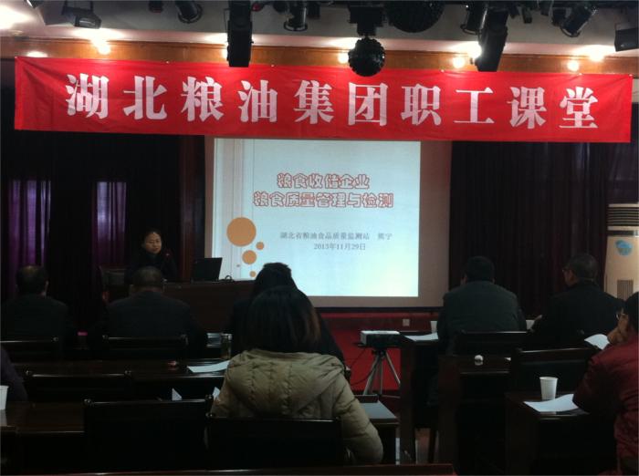2013年11月29日,湖北省糧油集團(tuán)舉辦了一期糧油倉儲和檢化驗基礎(chǔ)知識培訓(xùn),聘請湖北大學(xué)知行學(xué)院汪浩明老師和湖北省糧油食品質(zhì)量監(jiān)測站熊寧站長授課。集團(tuán)各子企業(yè)糧油倉儲管理和檢化驗等相關(guān)崗位工作人員以及本部員工54人參加了培訓(xùn)。兩位老師主要講授了糧油出入庫、儲存的主要步驟和操作要點,糧庫安全管理、倉儲機械管理的相關(guān)制度,以及糧油質(zhì)量管理與監(jiān)測、稻谷和小麥質(zhì)量及儲存品質(zhì)檢驗等方面的知識。