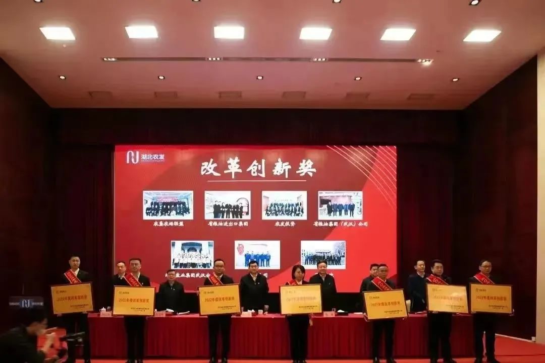 2月18日,湖北農(nóng)發(fā)集團2023年度工作大會暨黨建、黨風(fēng)廉政建設(shè)、法治建設(shè)工作會議、第一屆第一次職工代表大會在武漢召開,會議全面總結(jié)了湖北農(nóng)發(fā)集團2022年各項工作,統(tǒng)籌部署了2023年重點工作任務(wù)。會上,湖北省糧油集團斬獲“突出貢獻獎”、“改革創(chuàng)新獎”、“安全生產(chǎn)先進集體”、“先進工作者”等多種稱號。