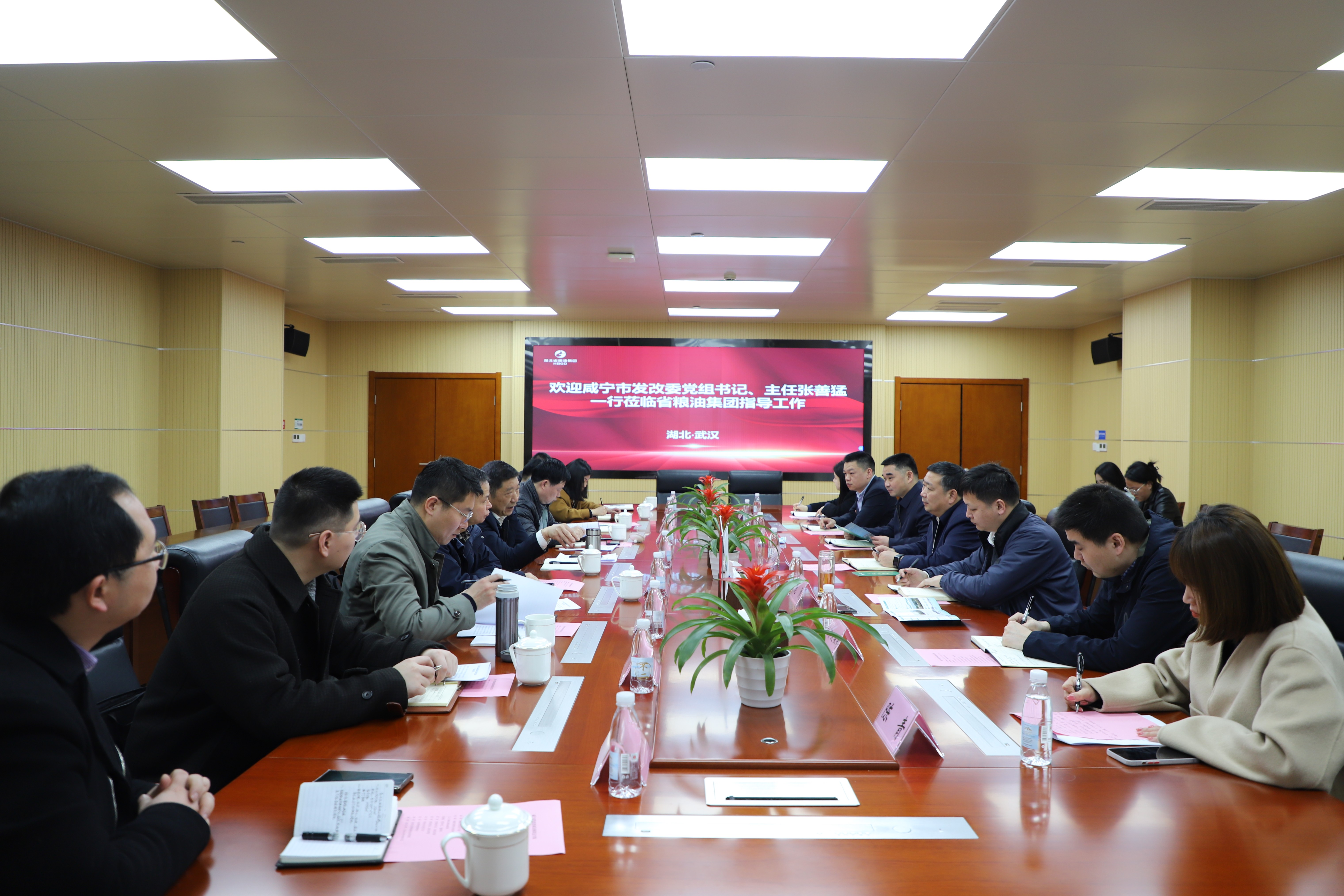 咸寧市發(fā)改委辦公室、糧儲科、長江門戶港協(xié)調(diào)服務(wù)專班、高新區(qū)執(zhí)法局相關(guān)負責(zé)人;湖北省糧油集團綜合辦公室、經(jīng)營管理部、投資發(fā)展部、及生態(tài)農(nóng)業(yè)公司相關(guān)負責(zé)同事參加座談。