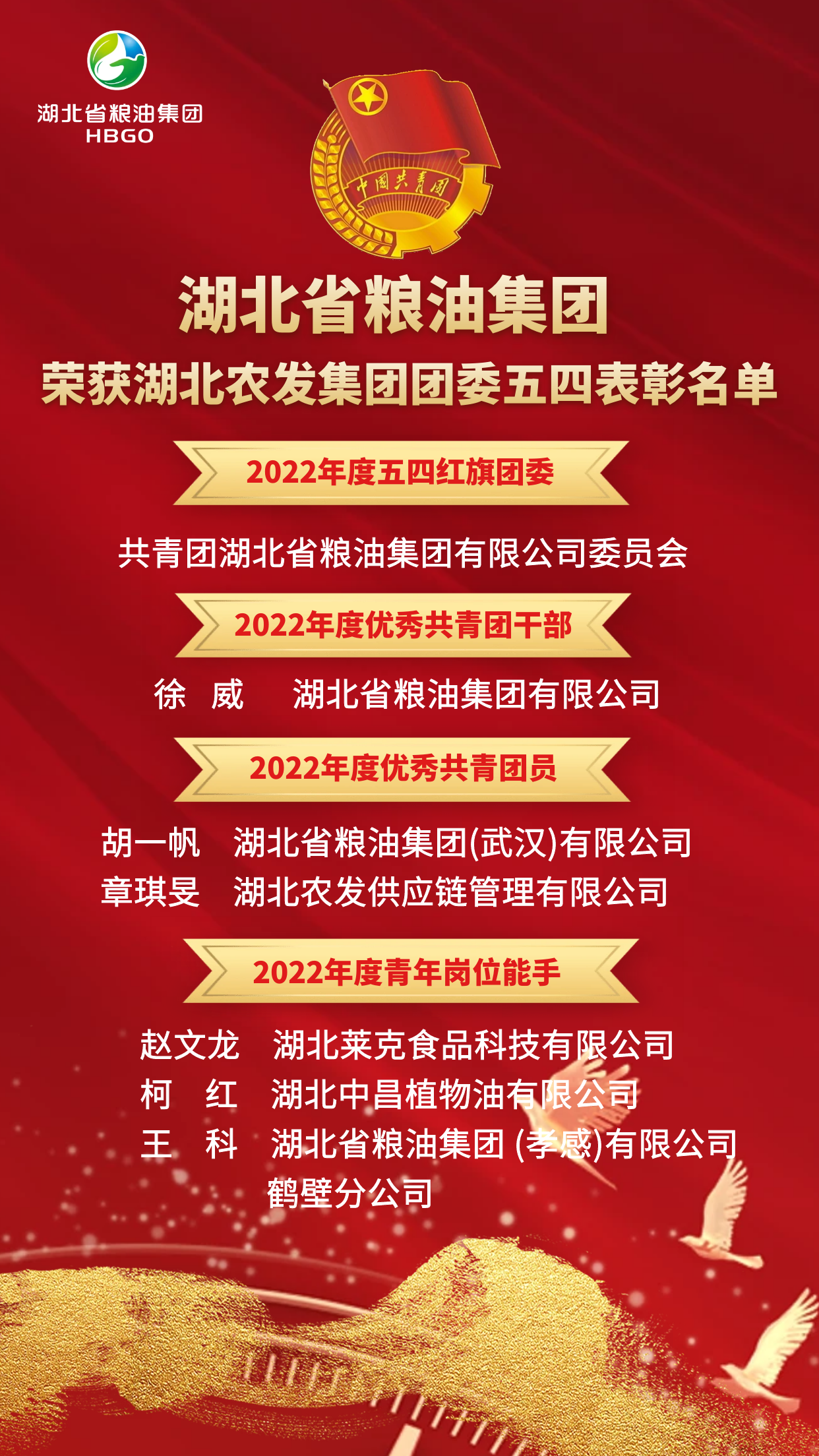 5月4日,省企業(yè)團工委表彰一批“兩紅兩優(yōu)”和青年崗位能手,湖北農(nóng)發(fā)集團多個集體和個人榮獲表彰,其中,省糧油集團團委榮獲“五四紅旗團委”,徐威同志榮獲“優(yōu)秀共青團干部”稱號。