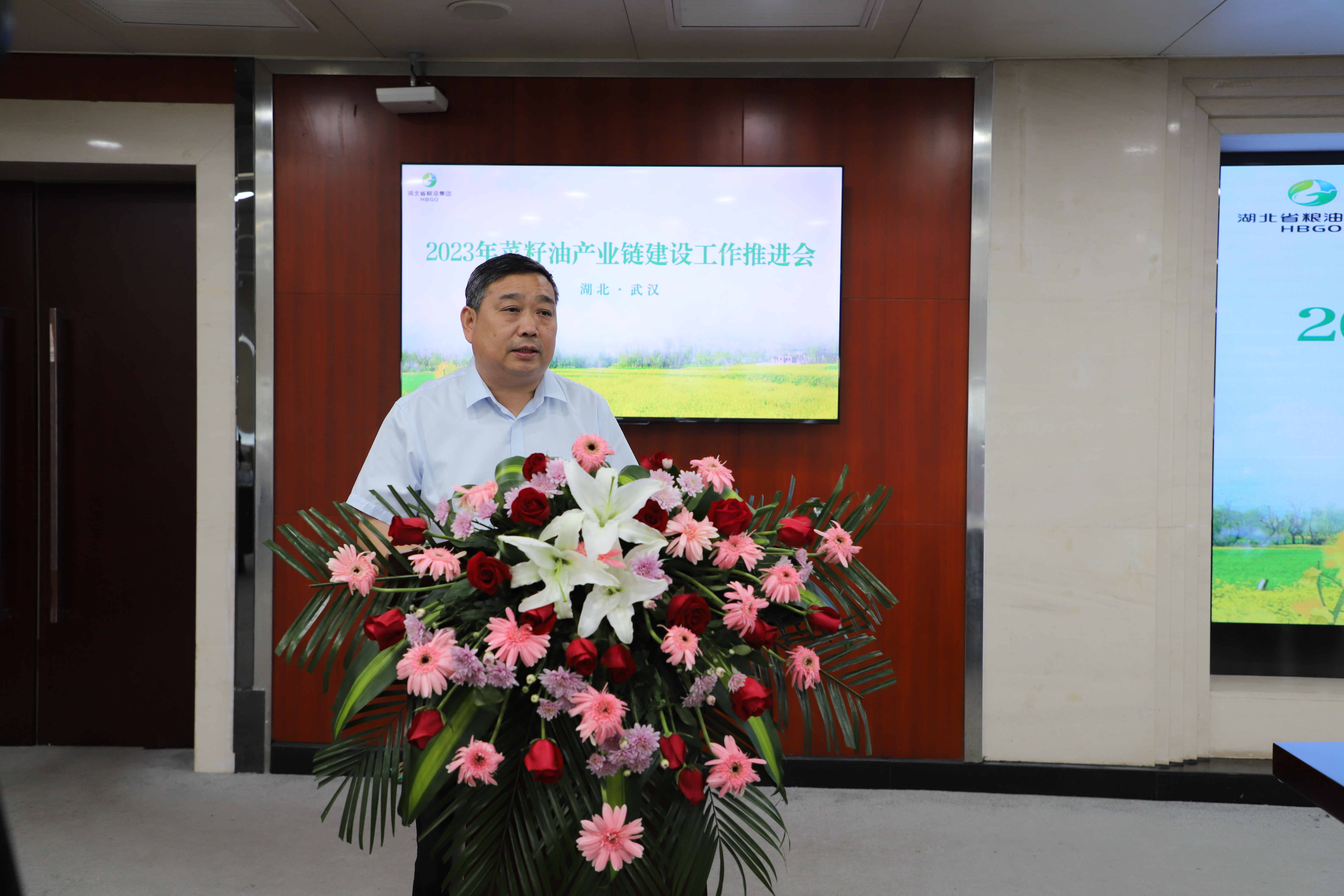 會(huì)上,中糧期貨有限公司武漢營(yíng)業(yè)部總經(jīng)理姚暉、中糧祥瑞糧油工業(yè)(荊門(mén))有限公司副總經(jīng)理廖克功、湖北農(nóng)發(fā)種業(yè)集團(tuán)有限公司董事長(zhǎng)丁輝俊對(duì)2023年菜籽油產(chǎn)業(yè)發(fā)展形勢(shì)作介紹,省糧油集團(tuán)黨委委員、副總經(jīng)理董成華詳細(xì)報(bào)告了菜籽油產(chǎn)業(yè)鏈上一階段的總體情況及2023年總體安排。