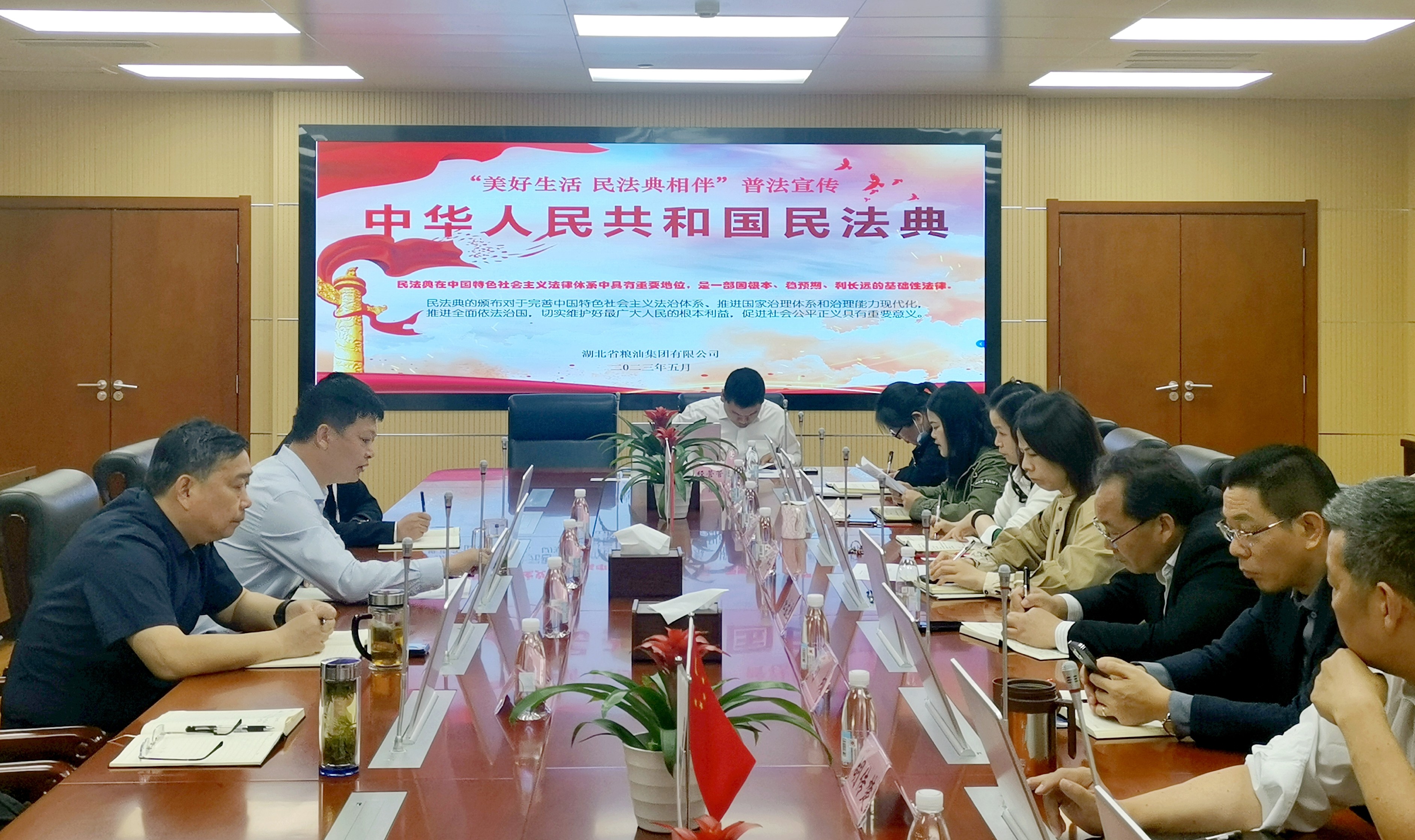 今年5月28日是《中華人民共和國(guó)民法典》頒布三周年紀(jì)念日,今年5月也是我國(guó)第三個(gè)民法典宣傳月。為深入學(xué)習(xí)宣傳貫徹黨的二十大精神,學(xué)習(xí)貫徹習(xí)近平法治思想和習(xí)近平總書(shū)記關(guān)于加強(qiáng)民法典學(xué)習(xí)宣傳的重要指示精神,推動(dòng)實(shí)施“八五”普法規(guī)劃,加大《民法典》普法宣傳,5 月22日,湖北省糧油集團(tuán)組織開(kāi)展“美好生活·民法典相伴”普法集中學(xué)習(xí)。
