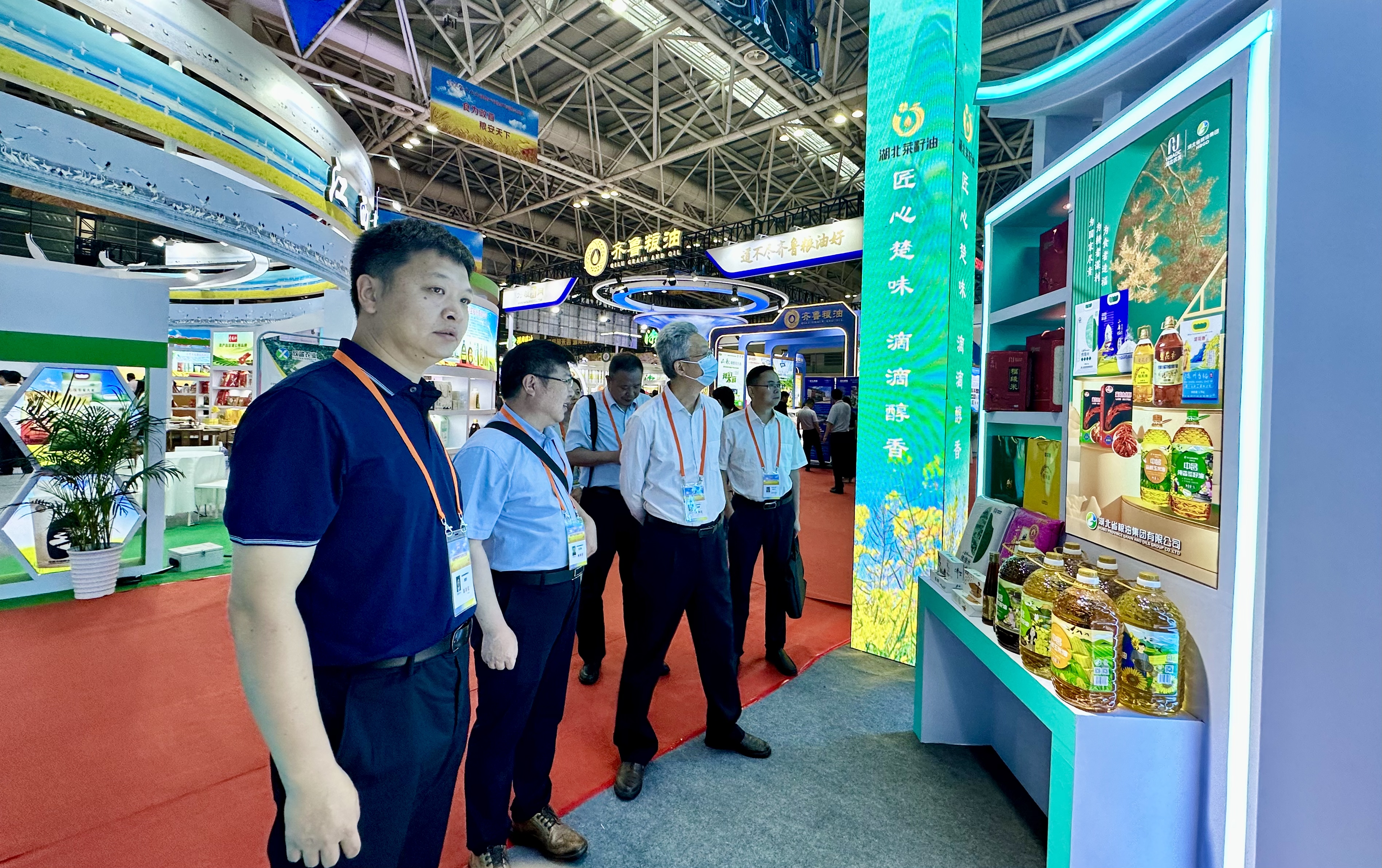 湖北農(nóng)發(fā)集團(tuán)黨委副書記、副總經(jīng)理、省糧食行業(yè)協(xié)會(huì)會(huì)長(zhǎng)萬(wàn)衛(wèi)東,省糧食局黨組成員、副局長(zhǎng)李碩,省糧油集團(tuán)黨委副書記、總經(jīng)理龐虎到省糧油集團(tuán)展位參觀