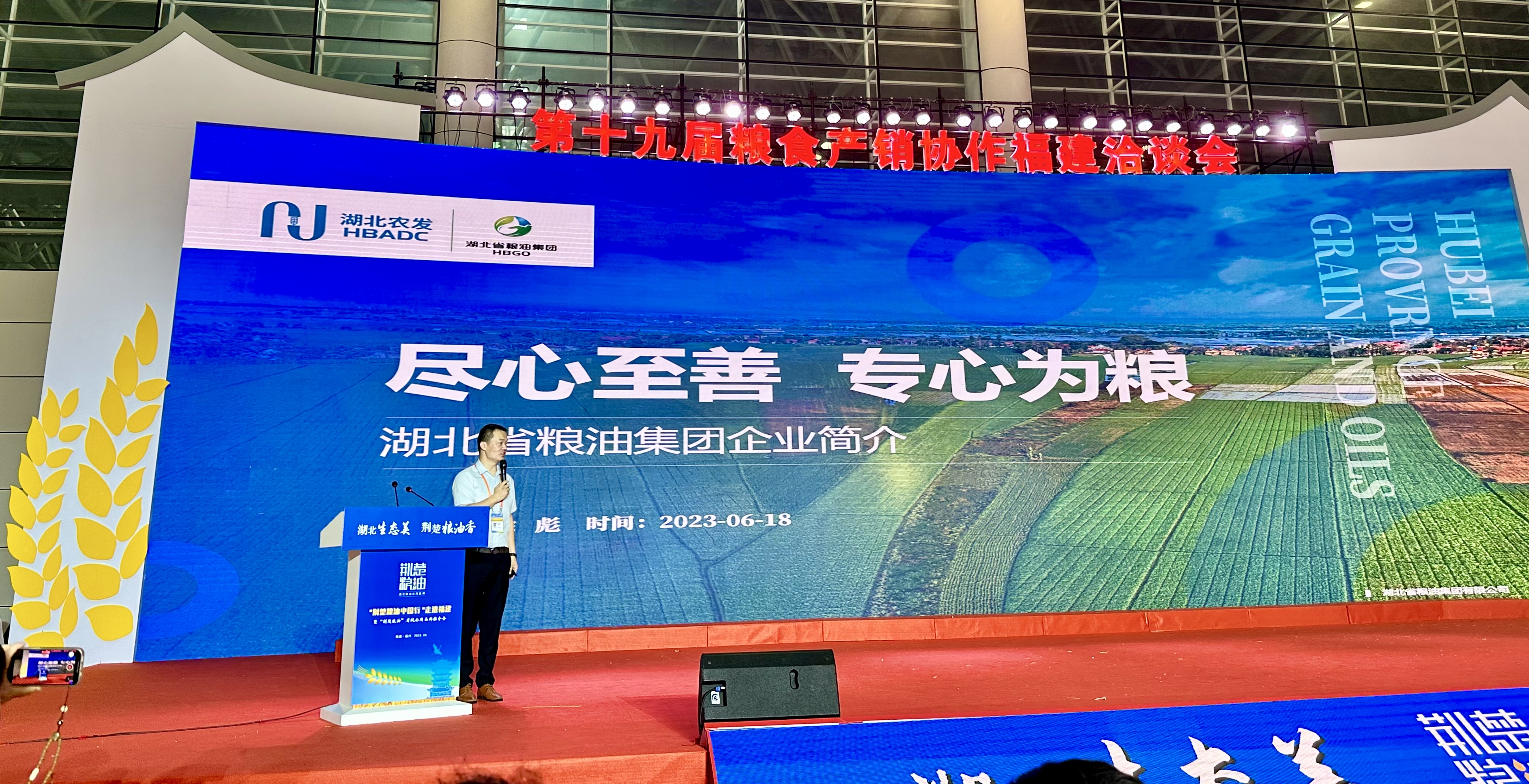 6月18日,由福建、山東、江西、吉林、安徽、河南、黑龍江、湖南、江蘇、湖北、內(nèi)蒙古、寧夏等十二個(gè)省(區(qū))糧食和物資儲(chǔ)備局(糧食局)共同主辦,國(guó)家糧食福建交易中心承辦的第十九屆糧食產(chǎn)銷協(xié)作洽談會(huì)(以下簡(jiǎn)稱糧洽會(huì)),在福州海峽國(guó)際會(huì)展中心隆重開(kāi)幕。湖北農(nóng)發(fā)集團(tuán)黨委副書記、副總經(jīng)理、省糧食行業(yè)協(xié)會(huì)會(huì)長(zhǎng)萬(wàn)衛(wèi)東,湖北省糧油集團(tuán)黨委副書記、總經(jīng)理龐虎帶隊(duì)參展。