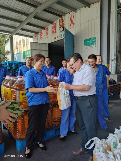 8月3日,集團黨委副書記、副總經(jīng)理萬衛(wèi)東赴省糧油集團中昌公司生產(chǎn)一線開展“送清涼 送健康”活動,深入了解公司發(fā)展情況和職工思想動態(tài),為糧油加油,幫基層解困,及時為一線送去清涼與關懷。