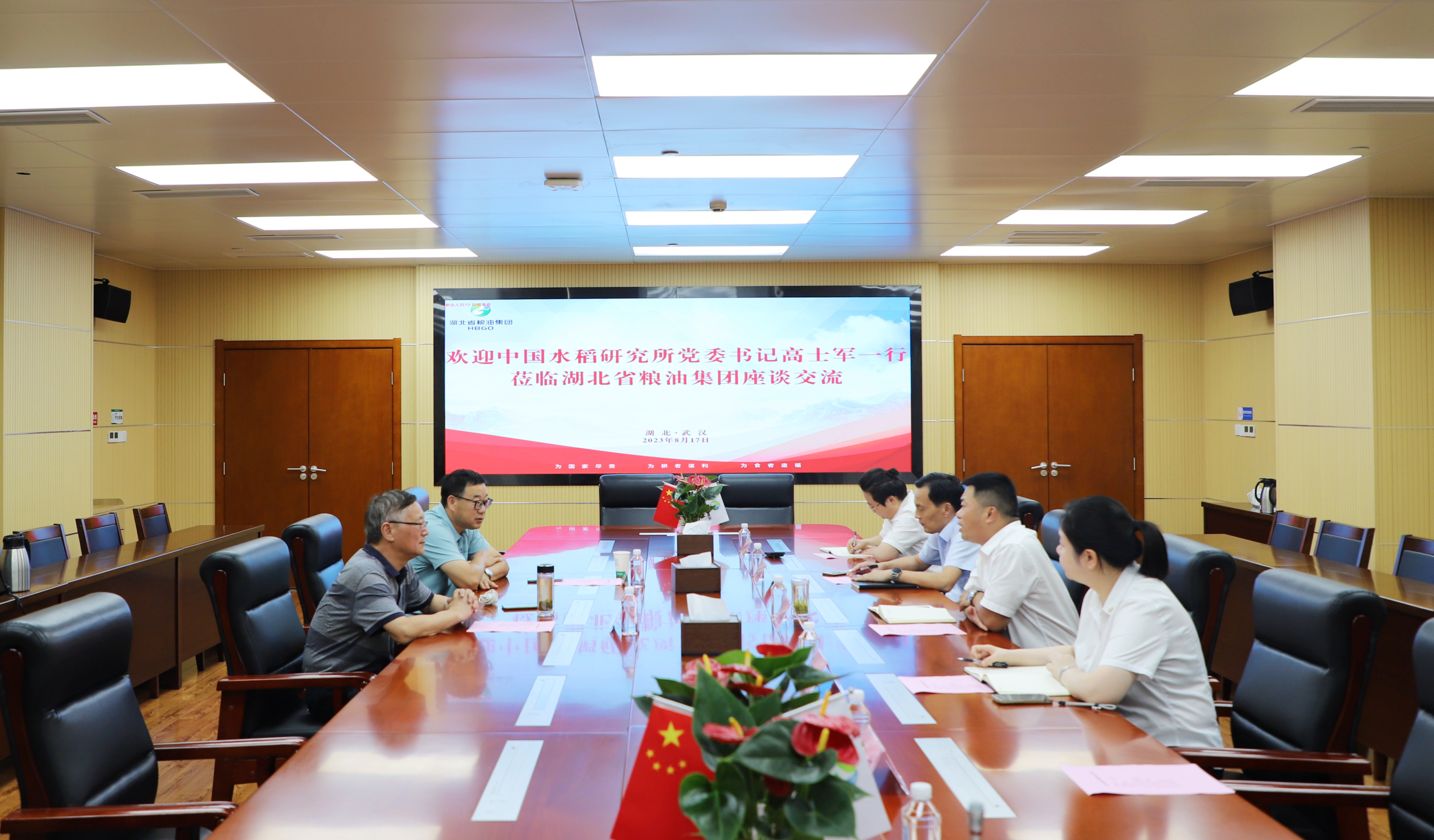8月17日,中國水稻研究所黨委書記高士軍一行到湖北省糧油集團(tuán)與集團(tuán)黨委委員、副總經(jīng)理王林奎就稻米產(chǎn)業(yè)鏈科創(chuàng)發(fā)展開展座談交流。