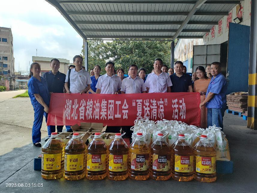 8月3日,湖北農(nóng)發(fā)集團(tuán)黨委副書記、副總經(jīng)理萬衛(wèi)東,省糧油集團(tuán)黨委委員、副總經(jīng)理董成華,工會(huì)主席胡傳楚一行赴湖北中昌植物油有限公司生產(chǎn)一線開展“送清涼 送健康”活動(dòng),深入了解公司發(fā)展情況和職工思想動(dòng)態(tài),為糧油加油,幫基層解困,及時(shí)為一線送去清涼與關(guān)懷。萬衛(wèi)東代表農(nóng)發(fā)集團(tuán)黨委向奮斗在一線的勞動(dòng)者致以親切的問候,囑咐大家注意防暑降溫,做好夏季倉庫安全檢查,平穩(wěn)度過高溫天氣,干部職工紛紛感謝農(nóng)發(fā)集團(tuán)和糧油集團(tuán)領(lǐng)導(dǎo)關(guān)懷,并表示將繼續(xù)堅(jiān)守崗位,盡職盡責(zé),確保各項(xiàng)工作有序開展。