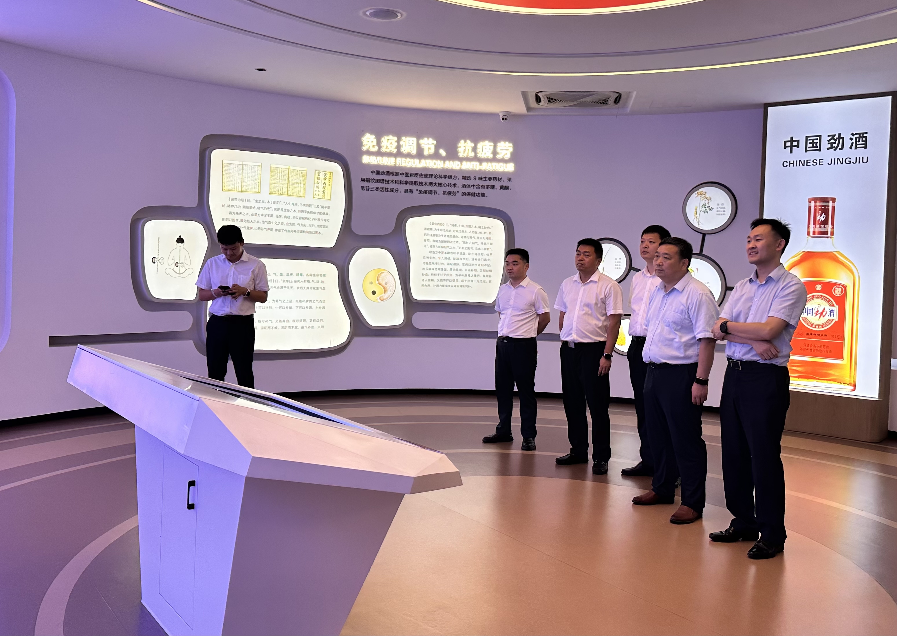 紀(jì)道斌一行深入勁酒總部、持正堂藥業(yè)、研發(fā)部門(mén)、儲(chǔ)酒基地以及勁牌展館進(jìn)行參觀考察,深入了解勁牌發(fā)展概況、中國(guó)勁酒的品牌歷程、公司產(chǎn)品結(jié)構(gòu)及健康功能、原酒資源布局等情況。