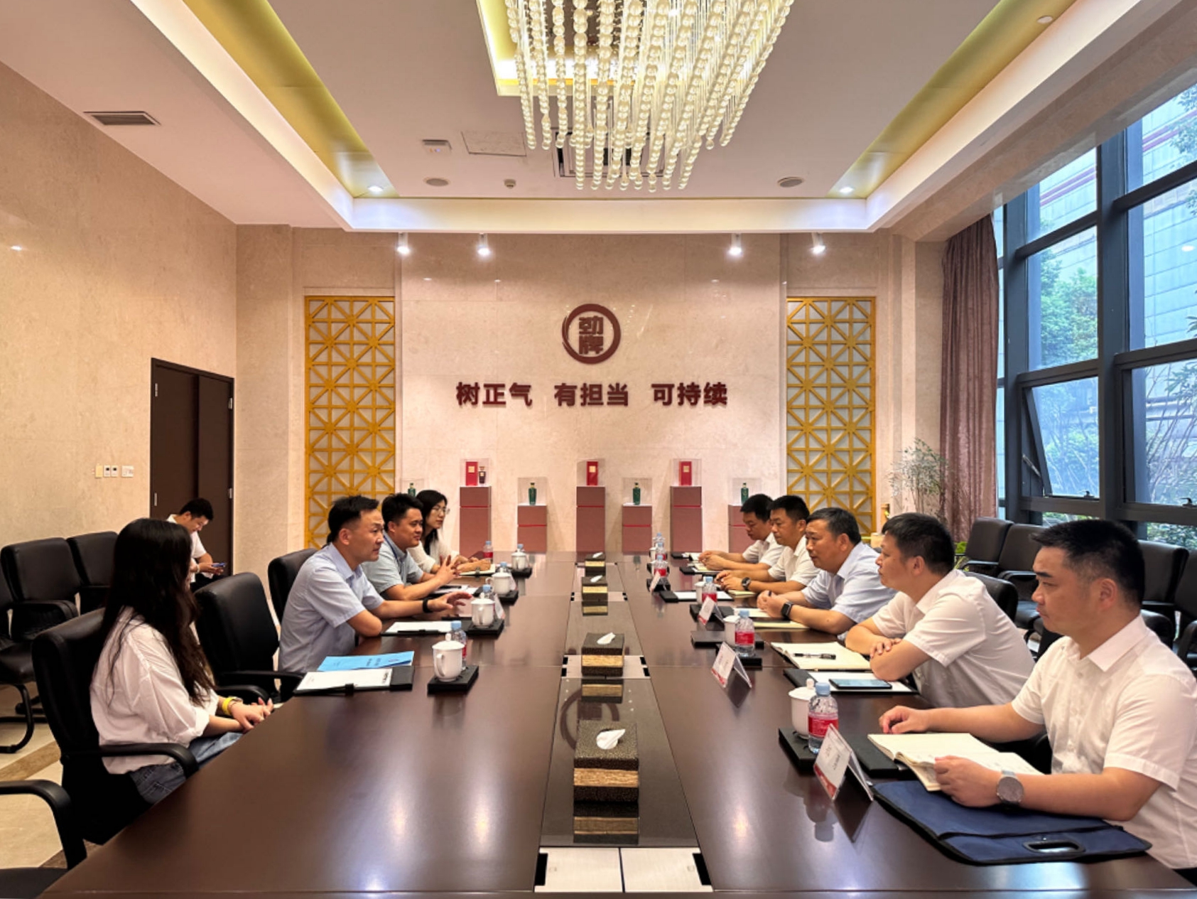 王楠波對(duì)紀(jì)道斌一行的考察表示熱烈歡迎,并介紹了勁牌公司基本情況。他表示,希望雙方能夠資源互補(bǔ)、攜手共進(jìn),深層次加強(qiáng)行業(yè)合作與業(yè)務(wù)聯(lián)系,共同助力雙方高質(zhì)量發(fā)展再上新臺(tái)階。