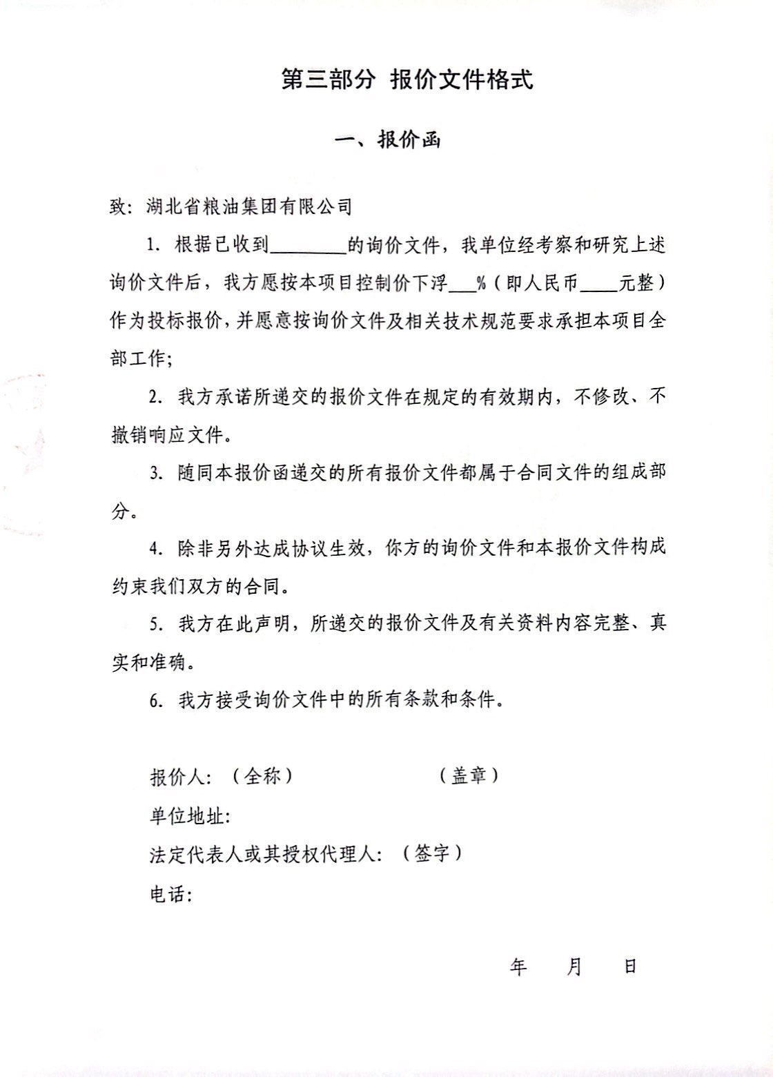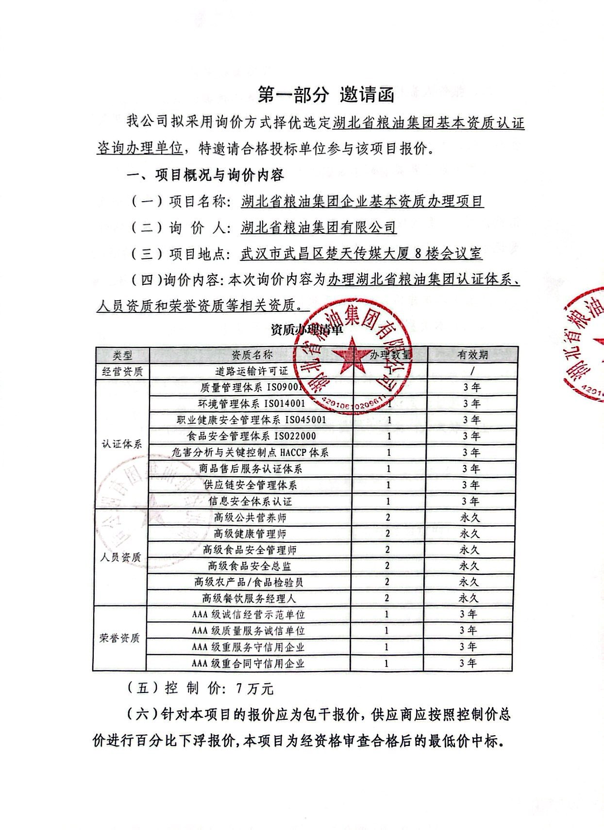 湖北省糧油集團(tuán)企業(yè)基本資質(zhì)辦理項(xiàng)目詢價(jià)文件