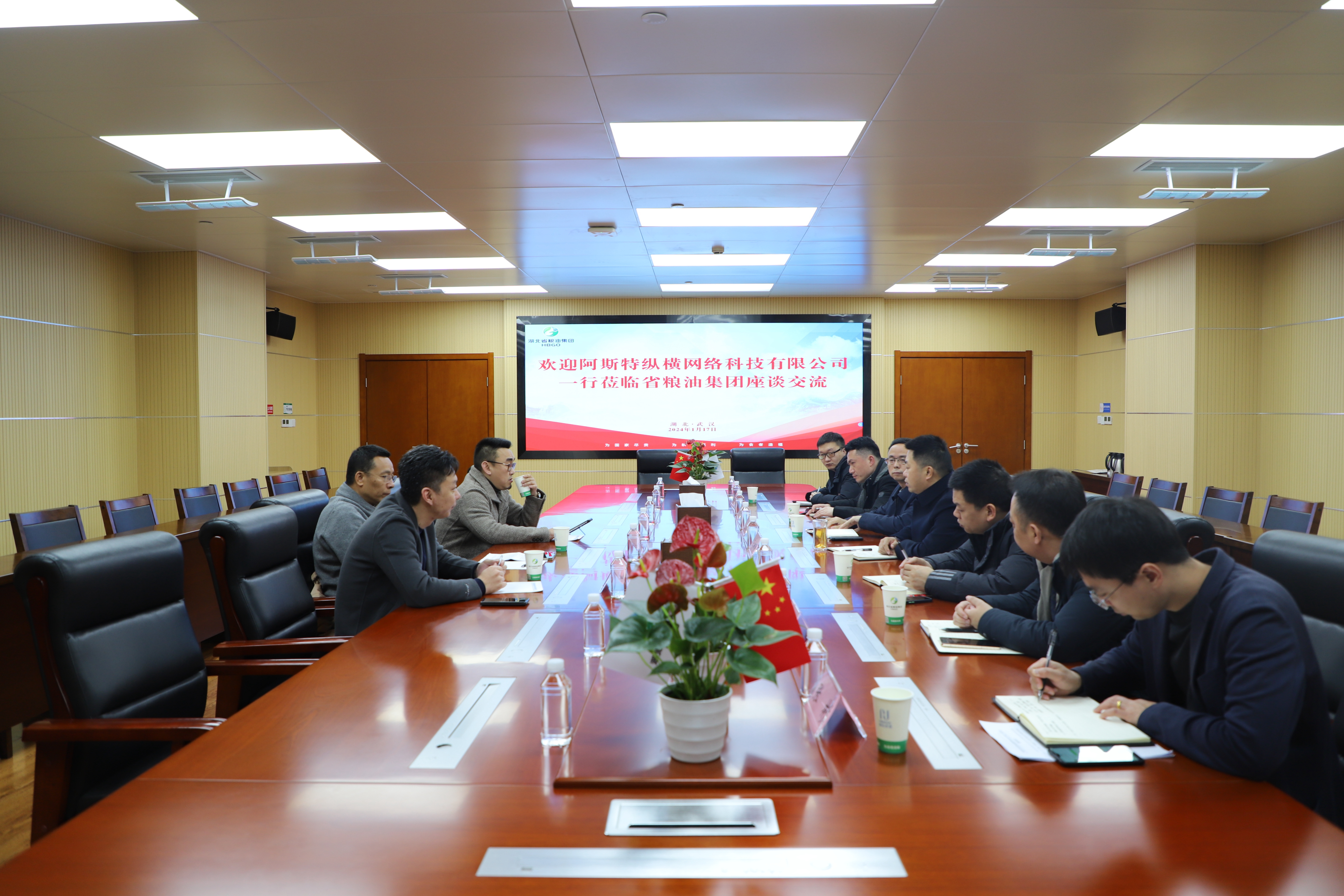 1月17日,湖北省糧油集團(tuán)黨委委員、副總經(jīng)理王林奎會(huì)見深圳市阿斯特縱橫網(wǎng)絡(luò)科技有限公司副總經(jīng)理馬欣一行,雙方就電商業(yè)務(wù)相關(guān)事項(xiàng)進(jìn)行交流。