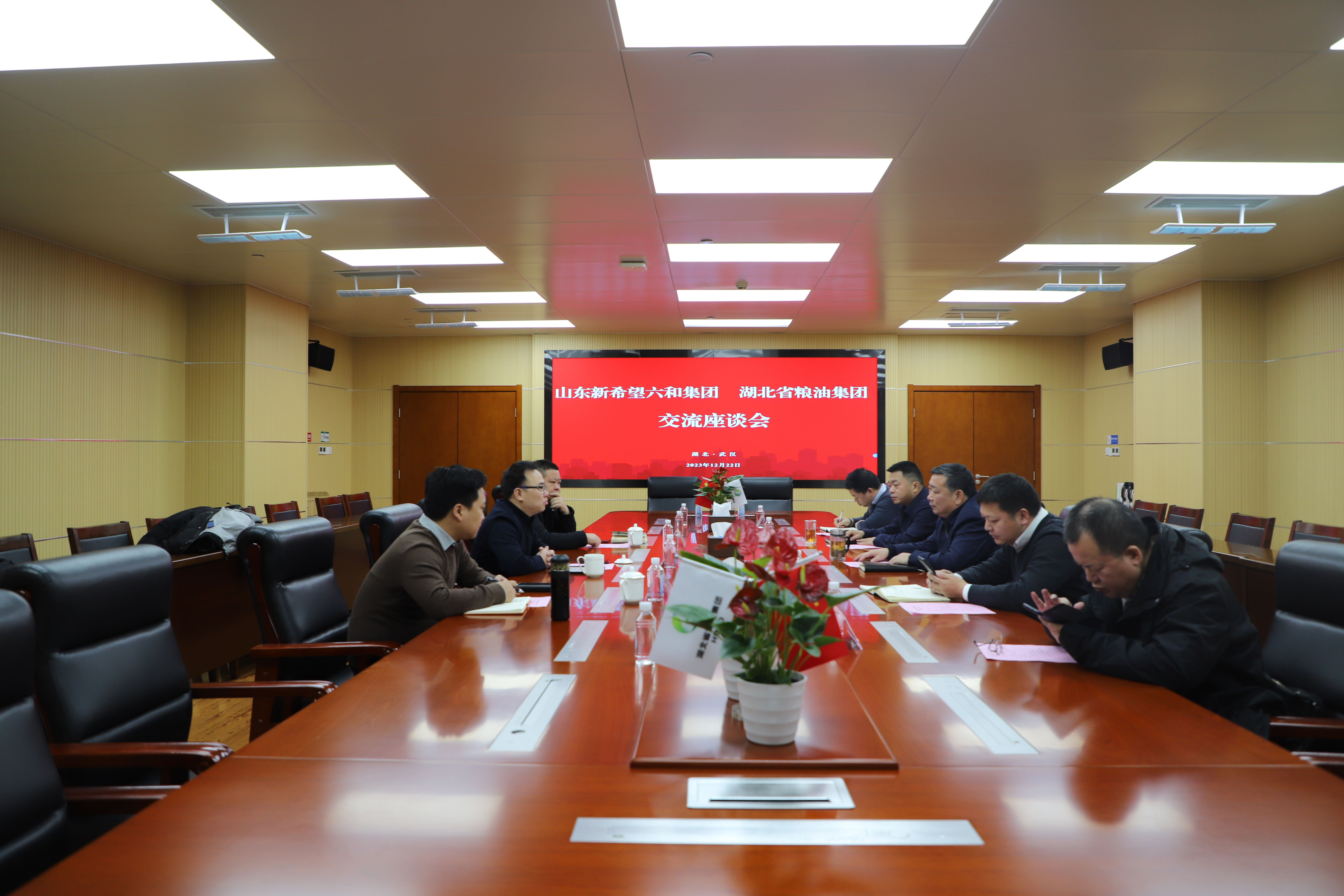 彭建華詳細(xì)介紹新希望六和公司歷史沿革和基本情況。他表示,湖北農(nóng)業(yè)資源稟賦,是新希望六和公司的重要市場之一,湖北省糧油集團(tuán)作為湖北省內(nèi)綜合實力最強(qiáng)的國有糧油企業(yè),在飼料加工、生豬養(yǎng)殖方面與新希望六和公司互補(bǔ)性強(qiáng)、合作前景廣闊。希望雙方進(jìn)一步加強(qiáng)交流對接,深挖合作潛力,不斷拓寬合作領(lǐng)域,攜手推動農(nóng)牧全產(chǎn)業(yè)鏈高質(zhì)量發(fā)展,實現(xiàn)互利共贏。