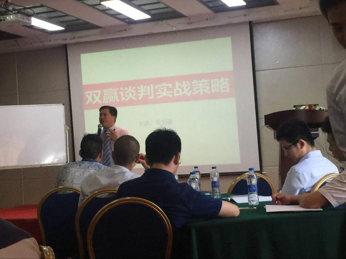 會(huì)上,吳老師圍繞雙贏談判理念、雙贏談判準(zhǔn)備、雙贏談判過(guò)程等五個(gè)方面,通過(guò)診斷咨詢、實(shí)戰(zhàn)演練的形式,指導(dǎo)學(xué)員如何掌握雙贏談判的技巧、提高交易成功率和增加銷售利潤(rùn)。