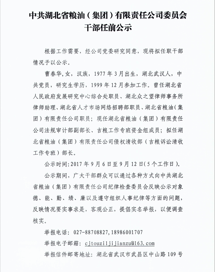 干部任前公示(債權(quán)清收部部長(zhǎng))
