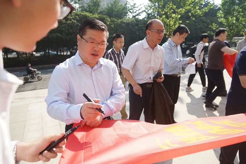 圖三:萬衛(wèi)東同志帶頭在“510 ·我要廉”橫幅簽名承諾