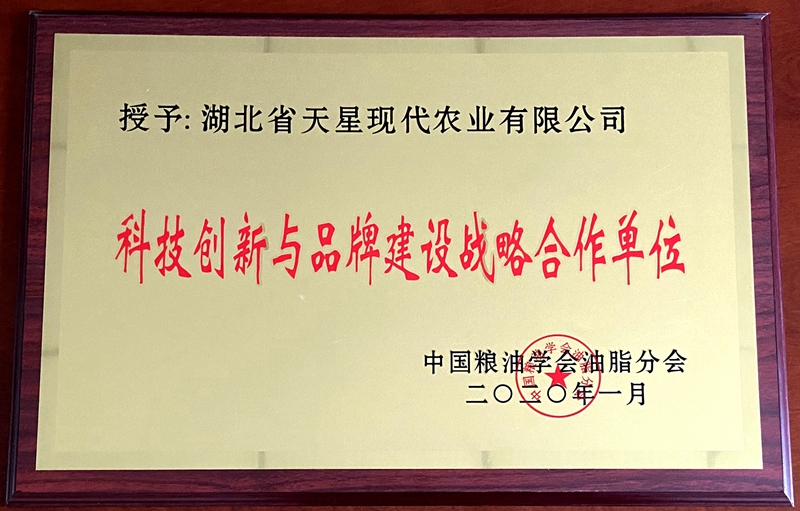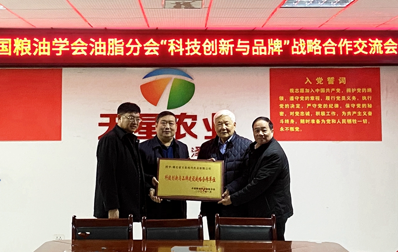 會(huì)上,王瑞元會(huì)長(zhǎng)還為天星農(nóng)業(yè)公司“科技創(chuàng)新與品牌”戰(zhàn)略合作單位進(jìn)行授牌。據(jù)悉,此項(xiàng)授牌活動(dòng)是中國(guó)糧油學(xué)會(huì)油脂分會(huì)在對(duì)全國(guó)1500余家糧油加工企業(yè)充分調(diào)研的基礎(chǔ)上,甄選10家科技創(chuàng)新型企業(yè)進(jìn)行“科技創(chuàng)新與品牌”戰(zhàn)略合作單位授牌。