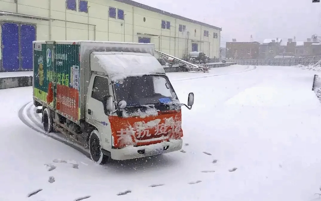 因?yàn)樘幵诟綦x管控時(shí)期,人手缺乏,他們既是送貨司機(jī)又是裝卸工,搬油扛米,無(wú)論是男還是女,一個(gè)個(gè)都干勁十足,迎著冰冷的雪花,額頭上卻沁出細(xì)密的汗珠。很多時(shí)候,到了中午時(shí)分他們還在配送的路上,一碗方便面,便是他們的午餐。