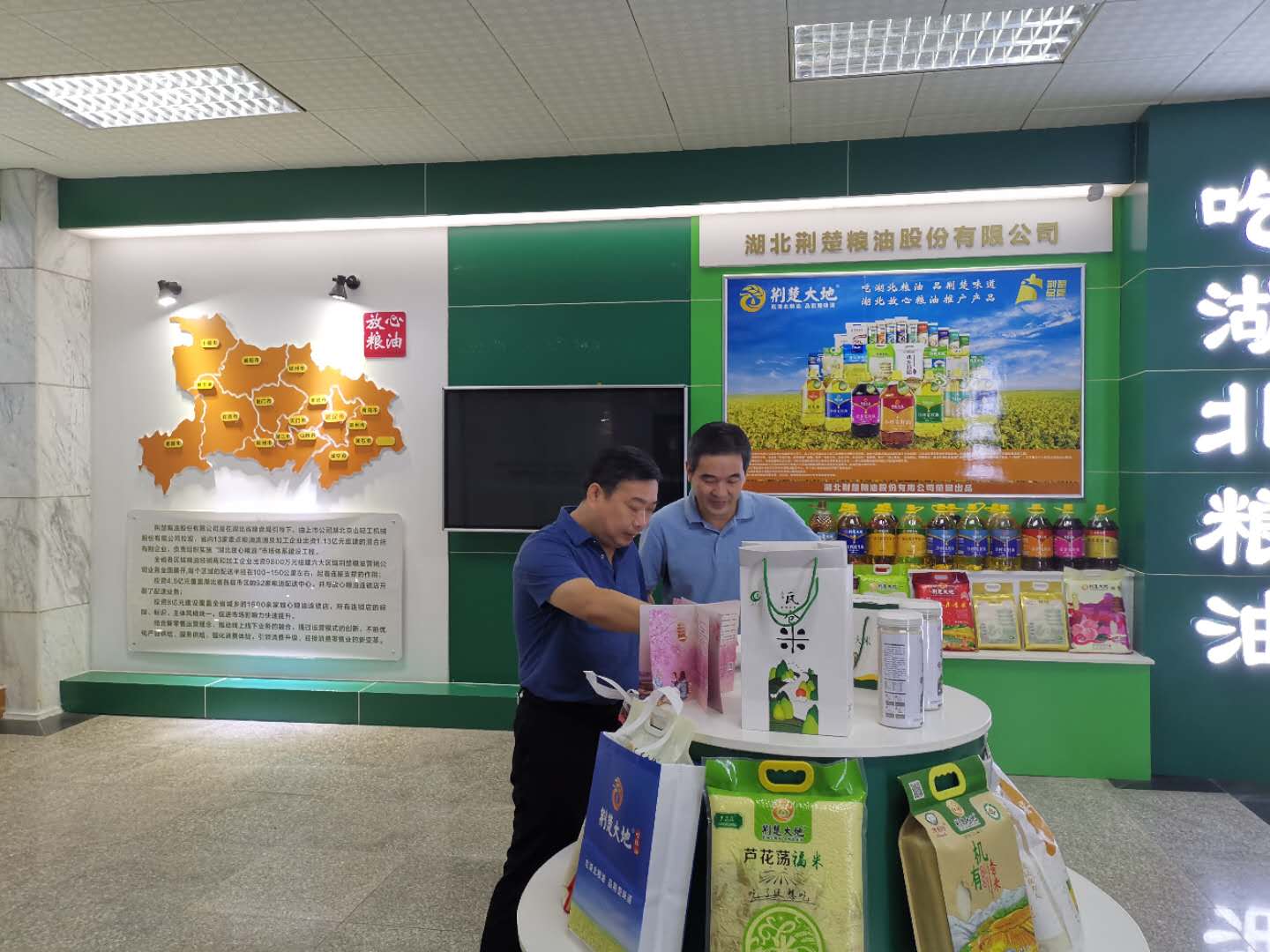 紀(jì)道斌一行在湖北荊楚糧油股份有限公司總經(jīng)理桂忠華的陪同下參觀了“放心糧油”產(chǎn)品展示廳。雙方介紹了疫情以來企業(yè)經(jīng)營發(fā)展情況,并就加強(qiáng)交流合作、共建放心糧油市場體系進(jìn)行了深入探討。