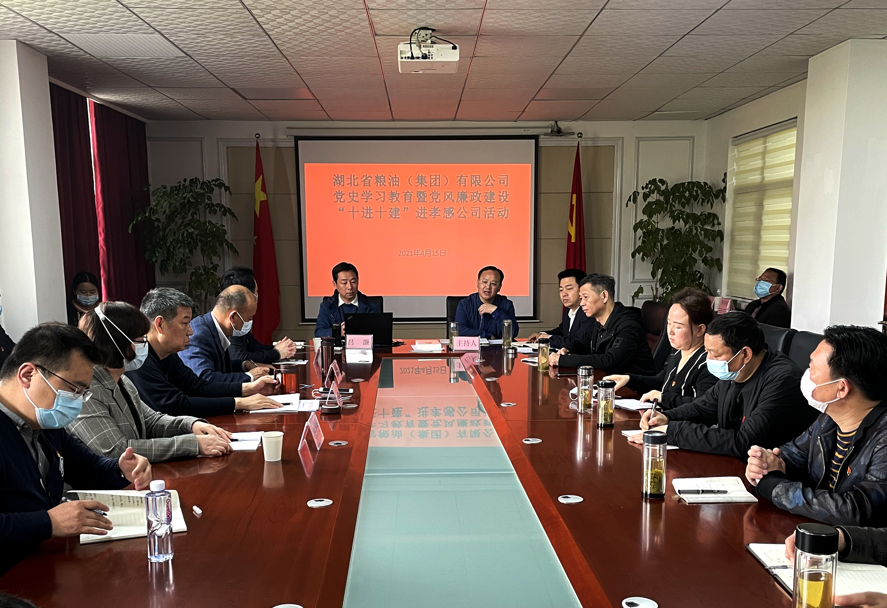 為進一步推動“清廉鄂糧”建設(shè)、“發(fā)展質(zhì)量(效能)提升年”活動,切實貫徹湖北省糧油集團黨委關(guān)于黨史學(xué)習(xí)教育工作部署,4月15日,集團黨史學(xué)習(xí)教育暨黨風(fēng)廉政建設(shè)“十進十建”宣教共建活動在孝感公司舉行,活動由內(nèi)場會議與外場觀摩相結(jié)合,包括理論專家專題輔導(dǎo)、現(xiàn)場學(xué)習(xí)交流、發(fā)放教育書籍等環(huán)節(jié)。集團黨委委員、紀(jì)委書記代利霞,集團總法律顧問兼孝感公司黨支部書記、董事長廖雙文參加活動并講話,集團總農(nóng)藝師兼孝感公司副董事長、總經(jīng)理王林奎主持,集團高管胡傳楚參加活動。
