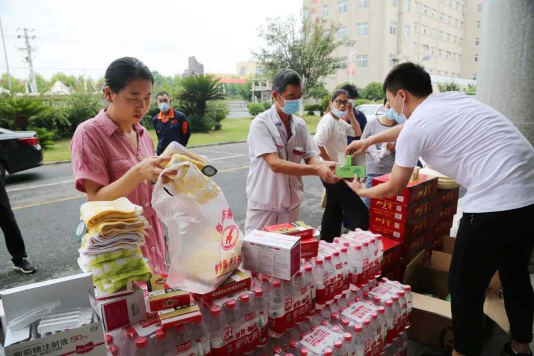 圖:集團(tuán)工會(huì)副主席、九星公司黨支部書(shū)記、董事長(zhǎng)張偉洪,九星公司總經(jīng)理李智勇為一線員工送去毛巾、綠豆、風(fēng)油精等降溫防暑用品。慰問(wèn)活動(dòng)中,九星公司安委會(huì)還對(duì)車(chē)間倉(cāng)庫(kù)等環(huán)節(jié)安全生產(chǎn)措施落實(shí)情況進(jìn)行再檢查。