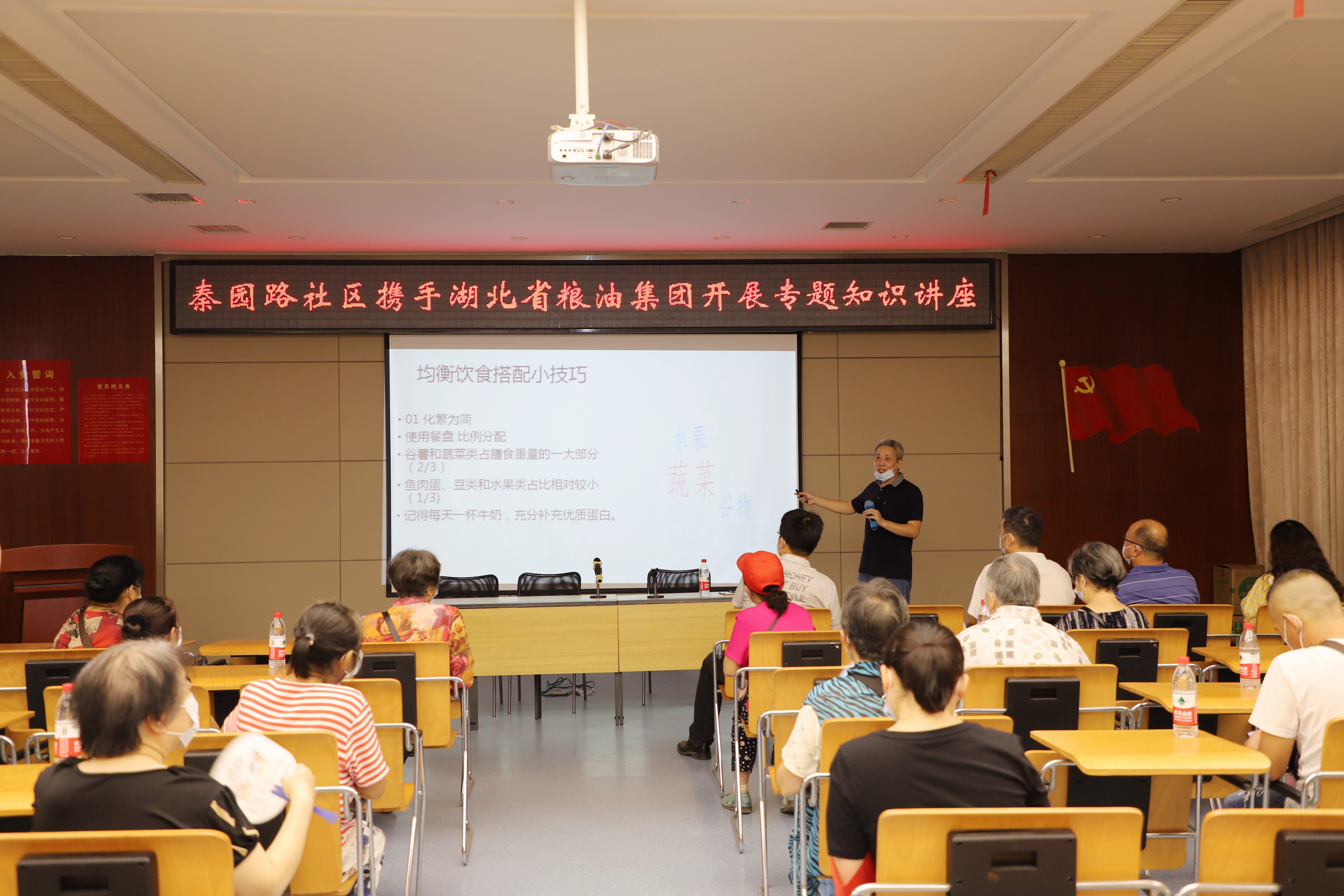 集團(tuán)特邀湖北大學(xué)知行學(xué)院糧食與食品工程學(xué)院汪浩明老師,以《膳食與營養(yǎng)》為題,為轄區(qū)居民科普了合理膳食、營養(yǎng)與健康、米面油甄別及挑選等知識,內(nèi)容貼近生活,科學(xué)實(shí)用,受到好評。