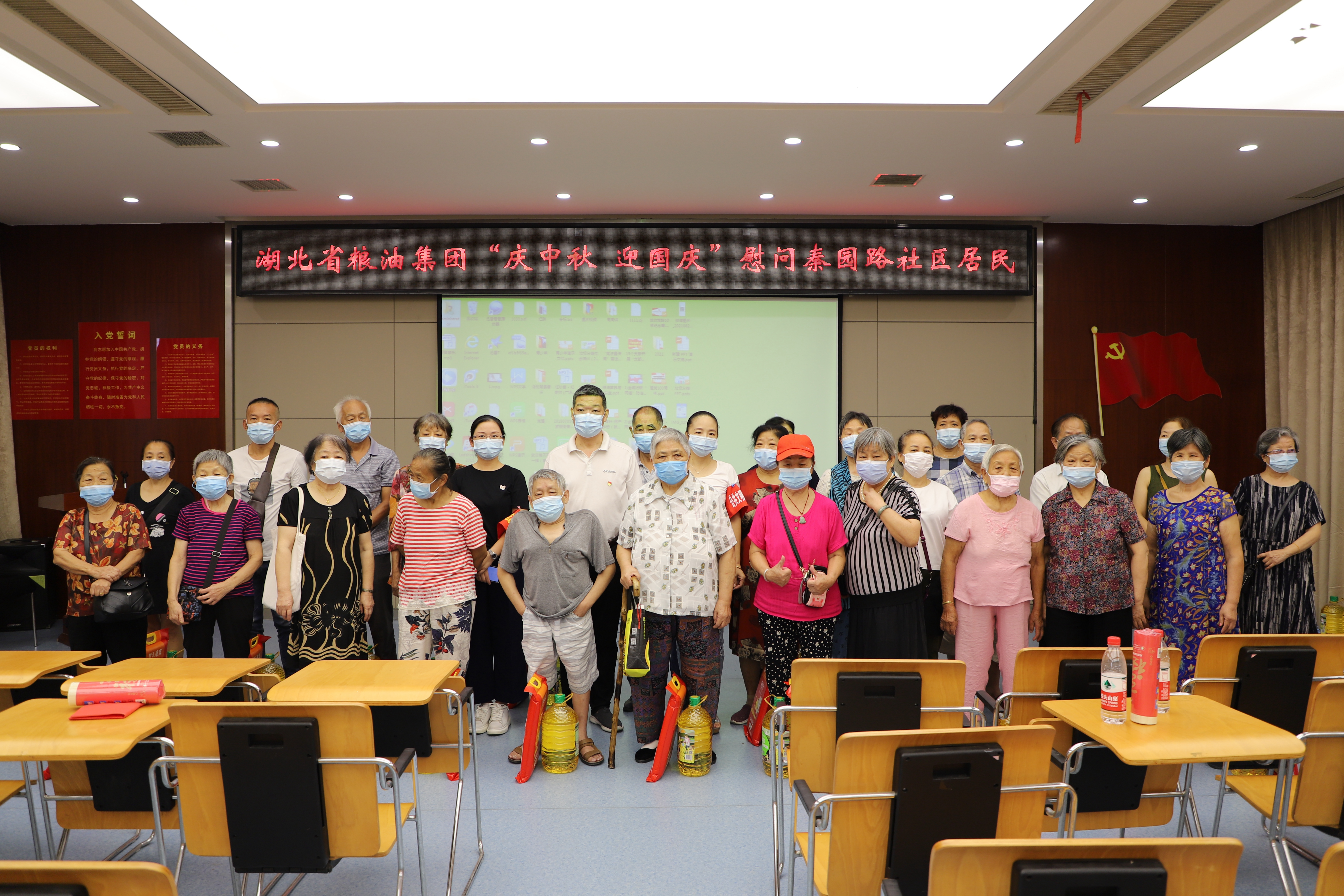 在中秋和國慶即將來臨之際,湖北省糧油集團(tuán)攜手秦園路社區(qū)開展了“慶中秋 迎國慶”慰問及知識講座活動,為轄區(qū)困難黨員、邊緣戶及孤寡老人送去節(jié)日問候和自產(chǎn)優(yōu)質(zhì)糧油產(chǎn)品。