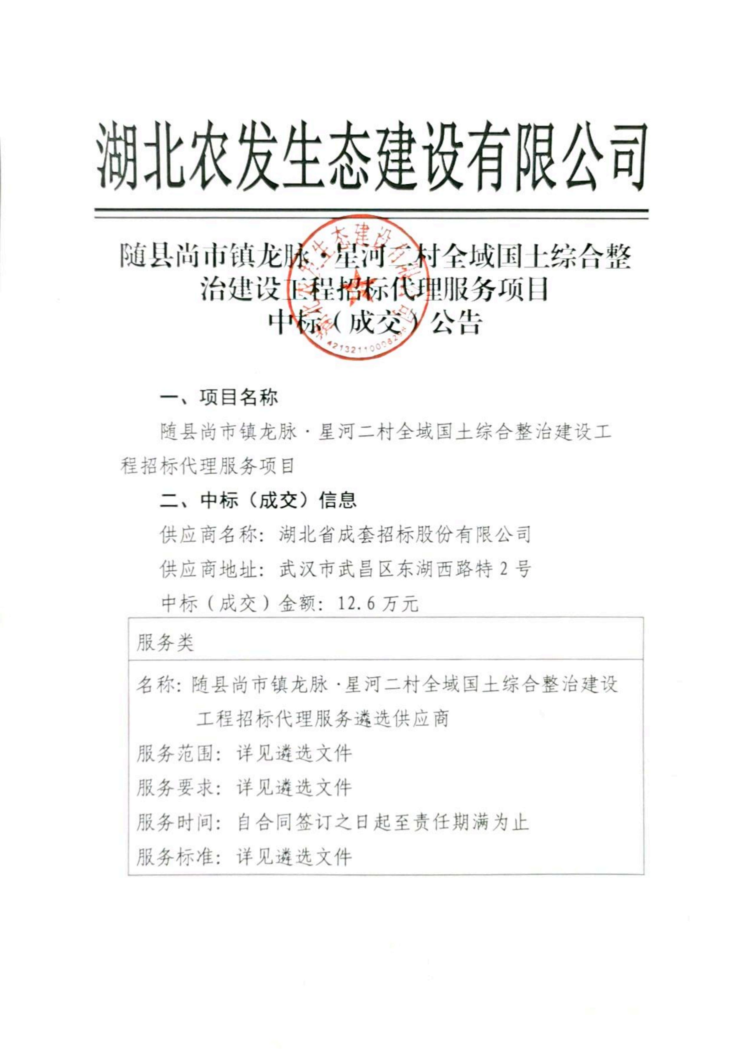 中標(biāo)公告---隨縣尚市鎮(zhèn)龍脈·星河二村全域國(guó)土綜合整治建設(shè)工程招標(biāo)代理服務(wù)項(xiàng)目