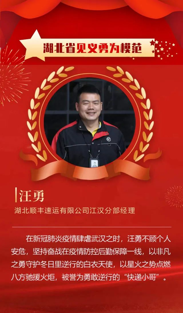2021年第八屆全國道德模范 汪勇(湖北順豐速運有限公司江漢分部經(jīng)理)