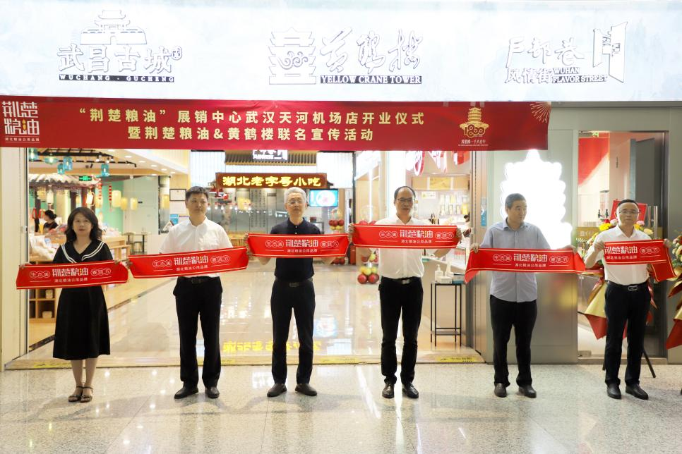為擴(kuò)大“荊楚糧油”(“湖北菜籽油”)省域公用品牌知名度和影響力,加快拓展“荊楚糧油”等省內(nèi)優(yōu)質(zhì)特色糧油產(chǎn)品品牌營銷市場,搶抓機(jī)場、高鐵、商圈等優(yōu)質(zhì)地段市場機(jī)遇,6月12日,由湖北省糧食局和省農(nóng)業(yè)農(nóng)村廳指導(dǎo),湖北省糧食行業(yè)協(xié)會和武漢市黃鶴樓公園管理處聯(lián)合主辦,湖北省糧油集團(tuán)有限公司承建的“荊楚糧油”省域糧油公用品牌武漢天河機(jī)場展銷中心開業(yè)儀式暨荊楚糧油&黃鶴樓聯(lián)名營銷宣傳活動在武漢天河機(jī)場出發(fā)廳隆重舉行。省糧食局黨組成員、副局長李碩,產(chǎn)業(yè)處處長龔偉,武漢市黃鶴樓公園管理處主任李鳴生,省糧油集團(tuán)黨委副書記、總經(jīng)理龐虎等出席門店落成儀式。