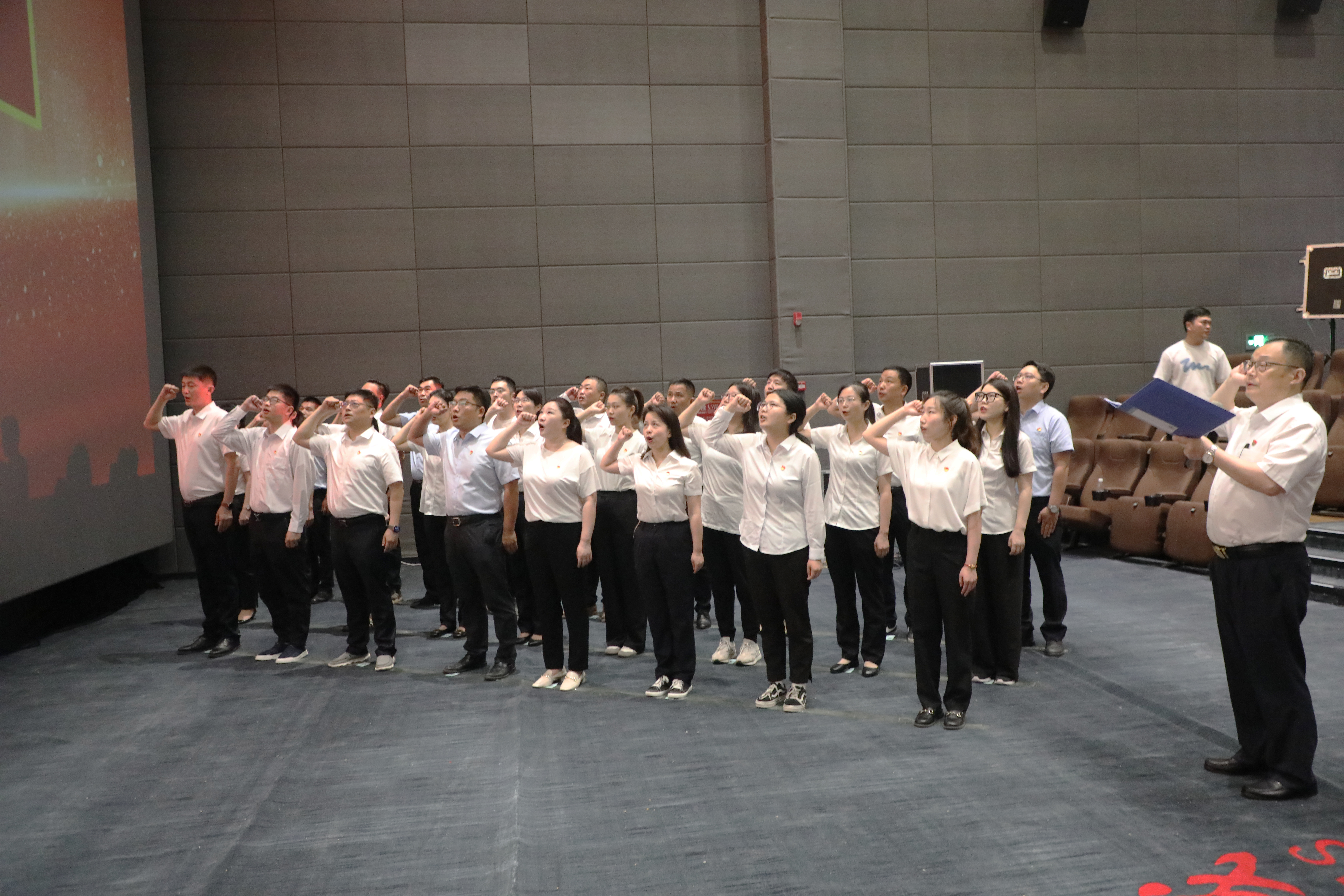 國泰黨支部與工貿(mào)黨支部全體黨員現(xiàn)場繳納黨費,高健鵬、王超分別通報了各支部黨員黨費繳納情況。全體黨員面對黨旗莊嚴(yán)宣誓,重溫入黨誓詞。