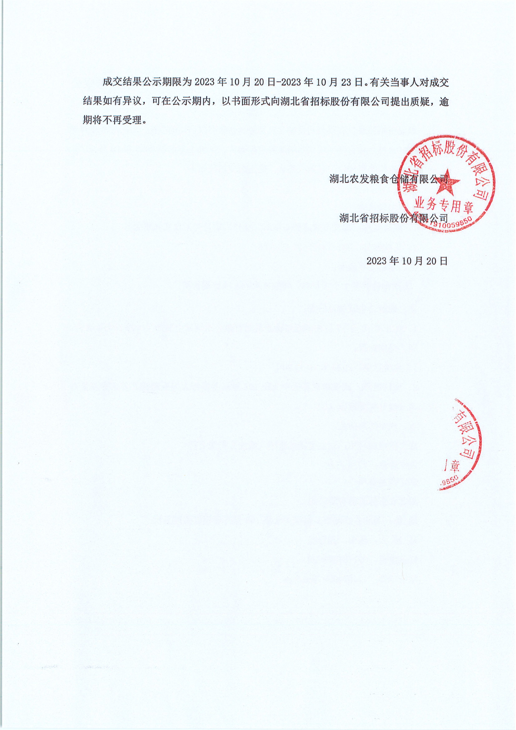 武漢市政府儲(chǔ)備糧庫(經(jīng)開))項(xiàng)目開工儀式布場(chǎng)服務(wù)成交結(jié)果公告