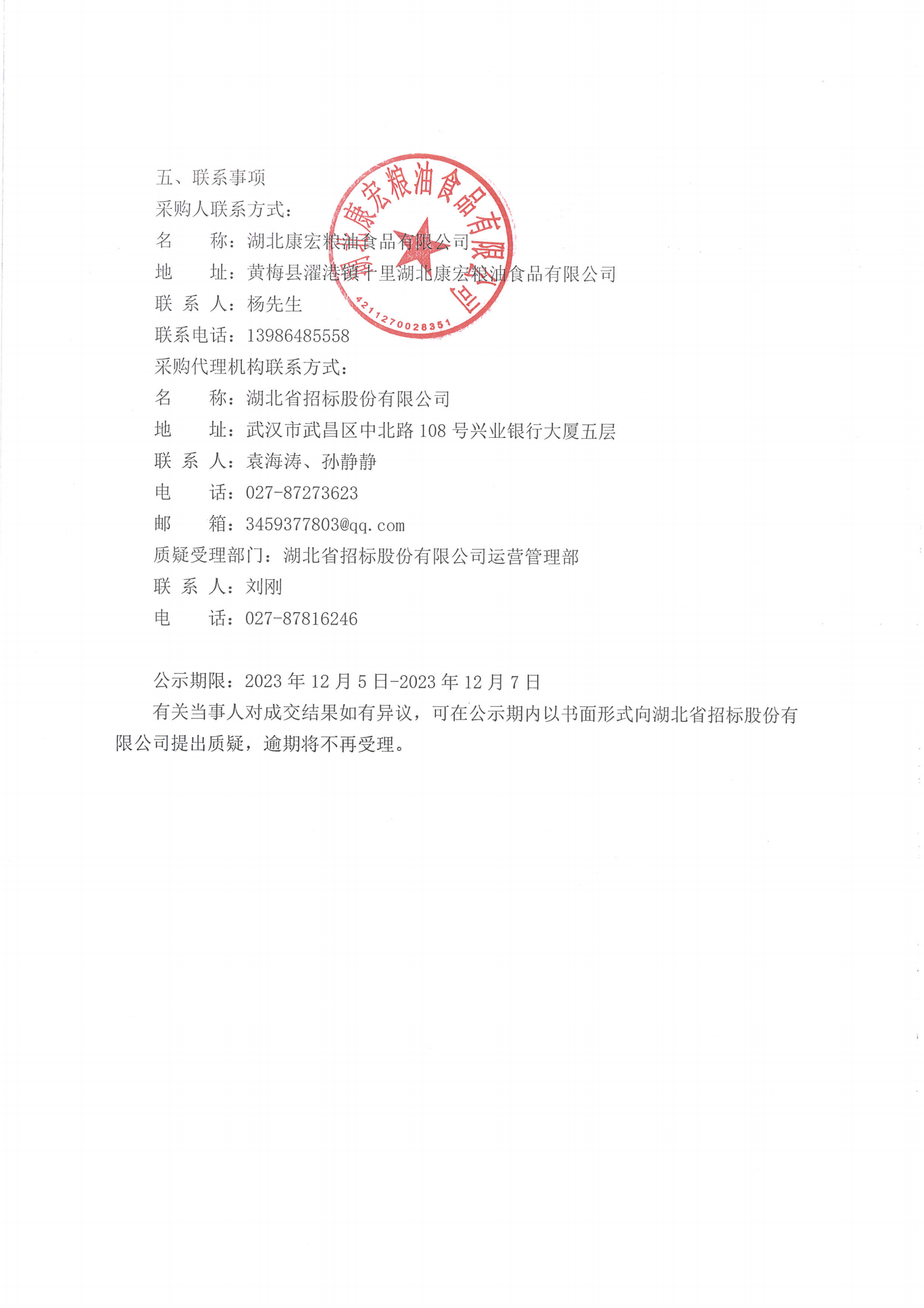 湖北康宏糧油食品有限公司3萬噸/年米糠綜合加工項目監(jiān)理服務成交結果公告