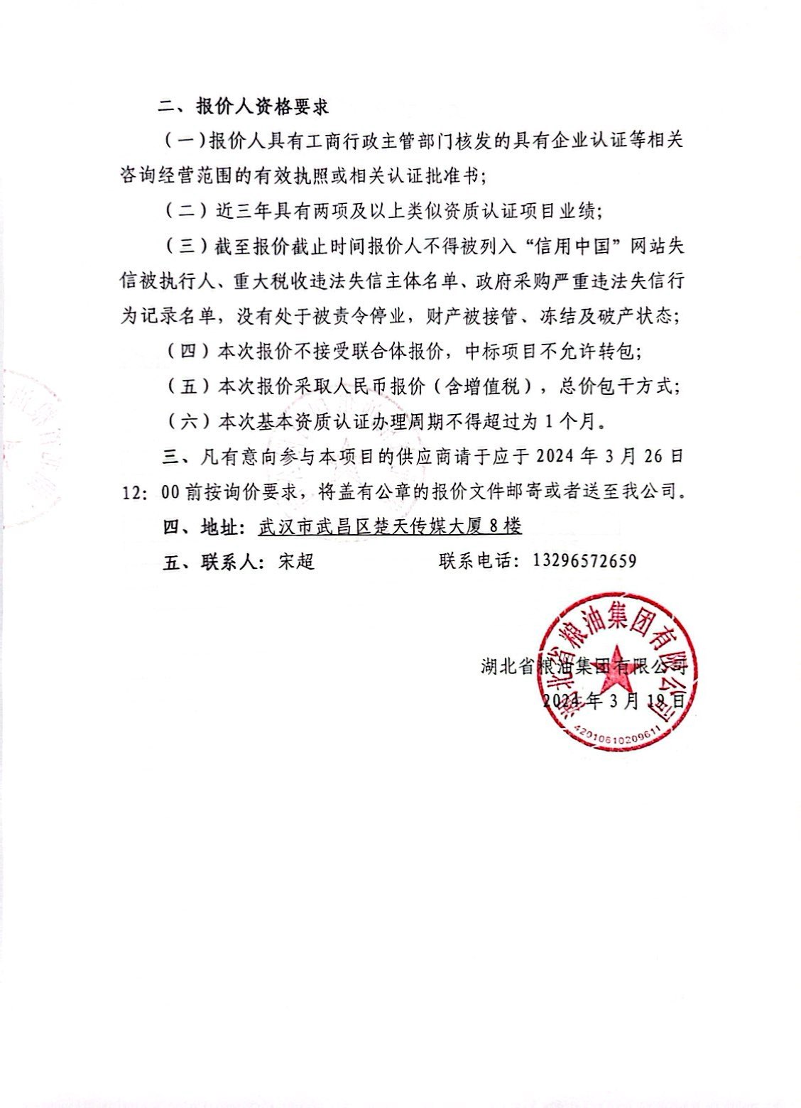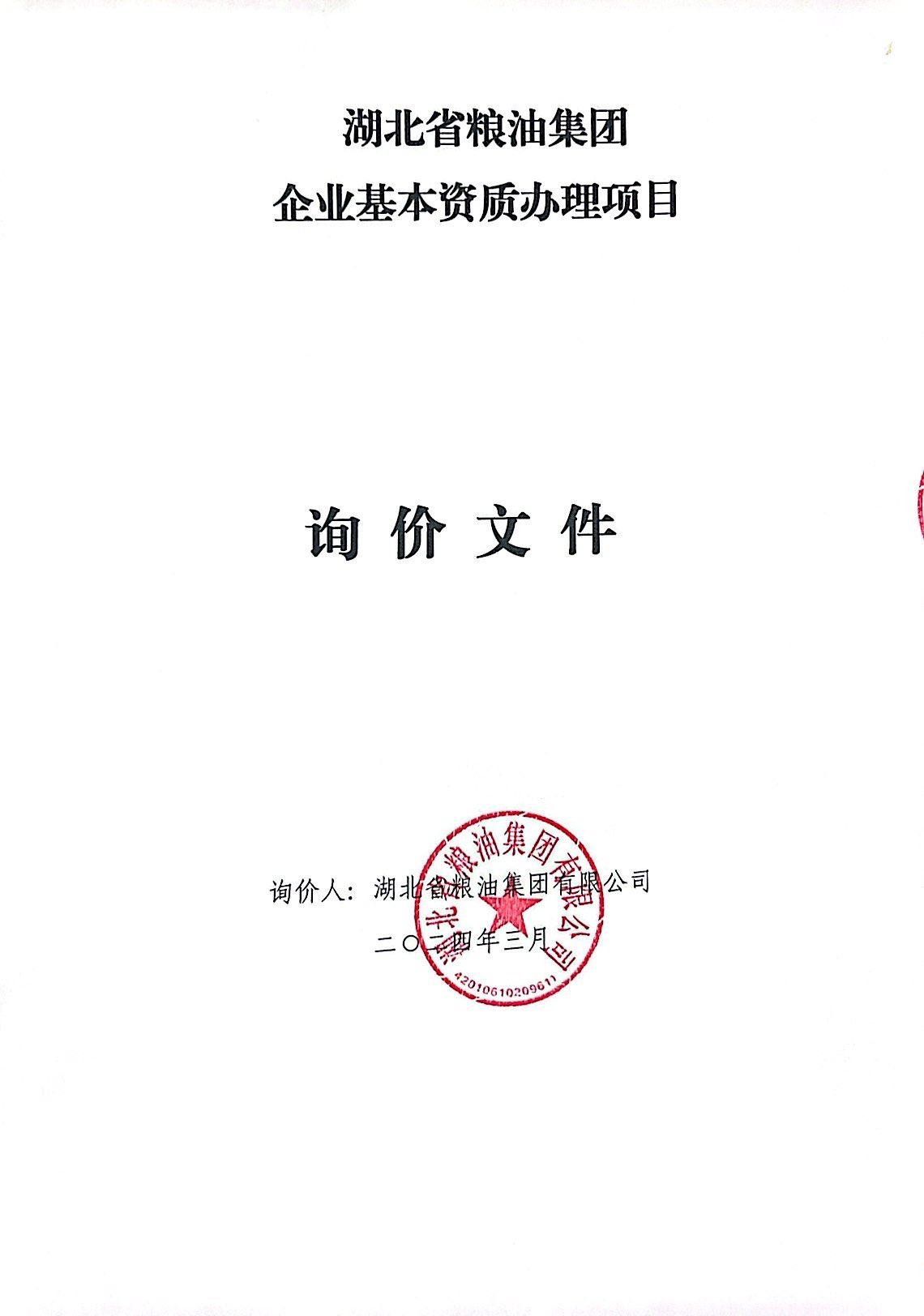 湖北省糧油集團(tuán)企業(yè)基本資質(zhì)辦理項(xiàng)目詢價(jià)文件