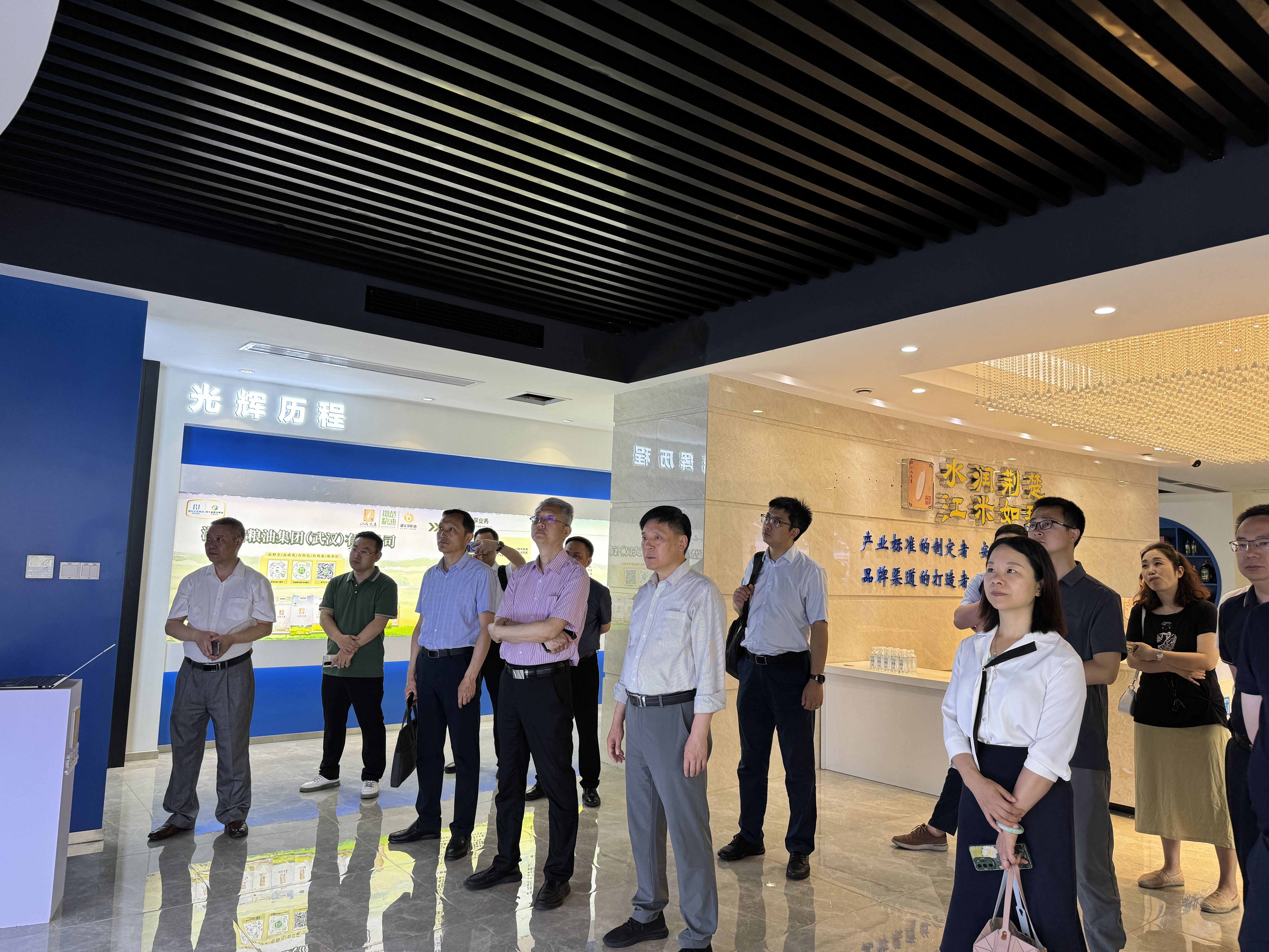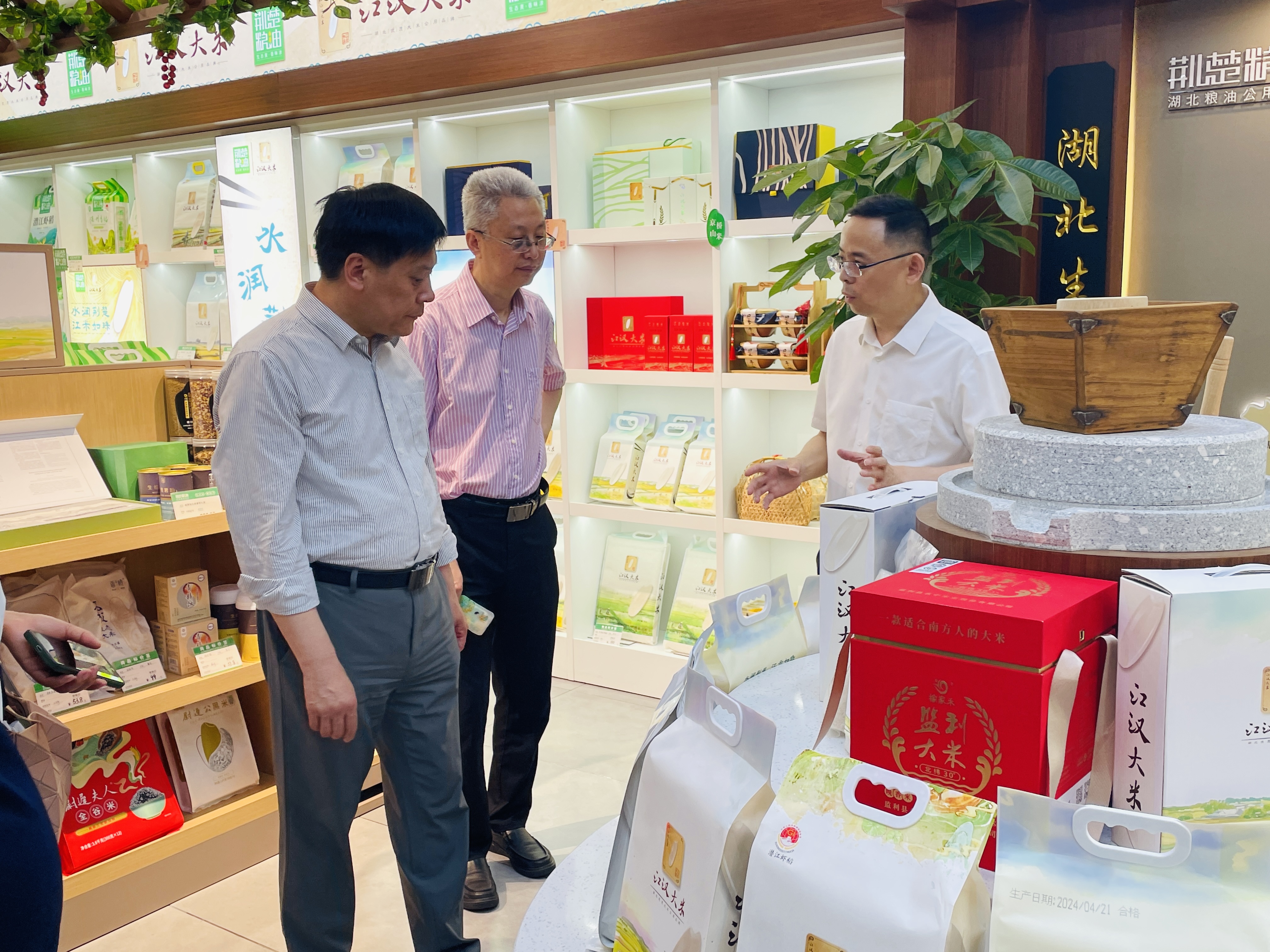 隨后,調(diào)研組參觀了湖北農(nóng)發(fā)集團、省糧油集團產(chǎn)品展銷中心暨“荊楚糧油”“江漢大米”公用品牌展銷體驗中心。這是一個集展示、體驗、銷售、直播、品牌推廣等多功能為一體的綜合型推廣中心,旨在叫響湖北糧油品牌,為消費者線上線下展示推介品類齊全、質(zhì)量可靠的湖北糧油產(chǎn)品,目前已在北京、武漢、十堰等省內(nèi)外核心商圈和重點地段相繼建成10家門店。