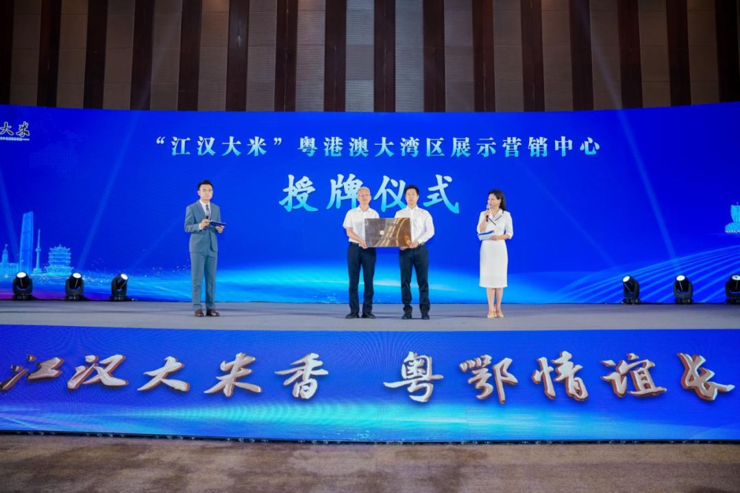 活動過程中,湖北省糧食局為首家“江漢大米”粵港澳大灣區(qū)展示營銷中心進行授牌,標志著“江漢大米”正式進軍粵港澳大灣區(qū)市場。