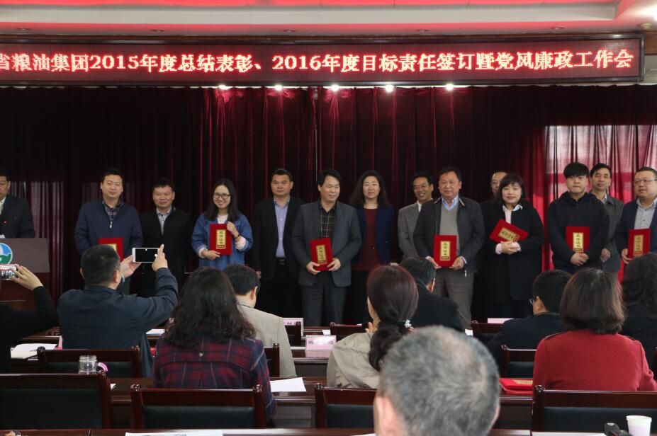 (通訊員劉陽靜文)2016年3月25日,省糧油集團(tuán)2015年度總結(jié)表彰、2016年度目標(biāo)責(zé)任書簽訂暨黨風(fēng)廉政工作會議隆重召開。