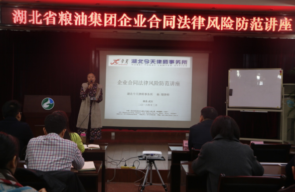 (通訊員 劉陽靜文)為增進(jìn)全員法律意識,規(guī)范合同管理,防范經(jīng)營風(fēng)險, 12月19日,我公司邀請法律顧問單位湖北今天律師事務(wù)所楊翊律師,就企業(yè)合同法律風(fēng)險的防范開展一次培訓(xùn)講座。