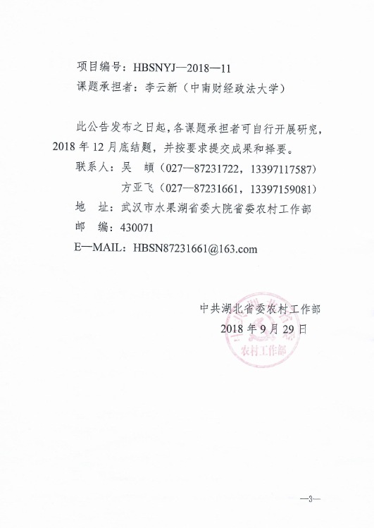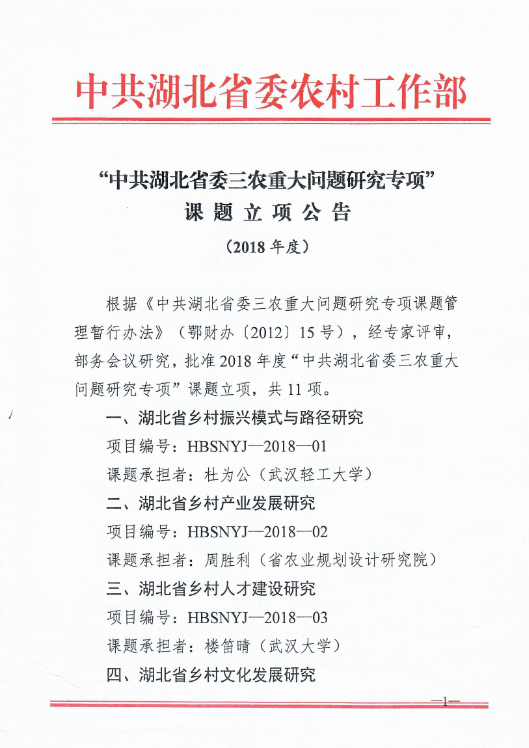 2018年度“省委三農(nóng)重大問題研究專項(xiàng)”在公開發(fā)布課題招標(biāo)公告后,吸引了省內(nèi)多個高等院校、科研單位、政策研究機(jī)構(gòu)的專家團(tuán)隊(duì)參與。經(jīng)省委農(nóng)村工作部組織專家評審、部務(wù)會議研究,共批準(zhǔn)11項(xiàng)“省委三農(nóng)重大問題研究專項(xiàng)”課題立項(xiàng)。