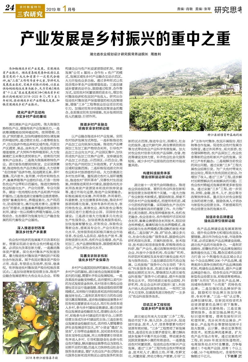 “湖北省鄉(xiāng)村產(chǎn)業(yè)發(fā)展研究”課題于2018年10月被“中共湖北省委三農(nóng)重大問題研究專項(xiàng)”立項(xiàng),由湖北省糧油(集團(tuán))下屬湖北省農(nóng)業(yè)規(guī)劃設(shè)計(jì)研究院獲批研究。日前,《鄉(xiāng)村新報(bào)》特刊刊發(fā)《產(chǎn)業(yè)發(fā)展是鄉(xiāng)村振興的重中之重》課題研究成果。