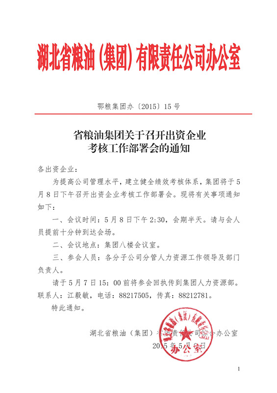 湖北省糧油集團(tuán)關(guān)于召開出資企業(yè)考核工作部署會(huì)的通知