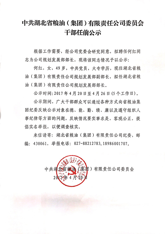 干部任前公示(規(guī)劃發(fā)展部部長(zhǎng))