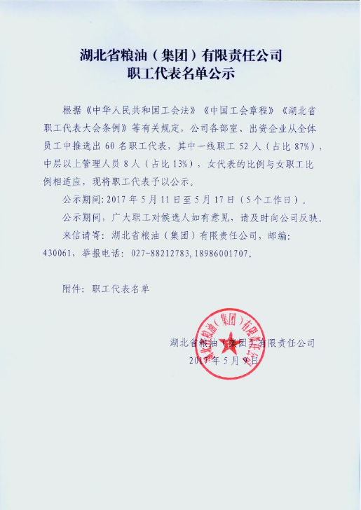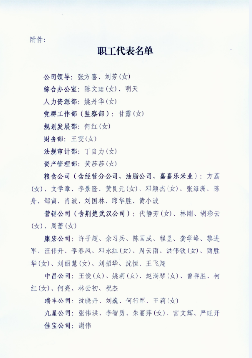 省糧油集團職工代表名單公示