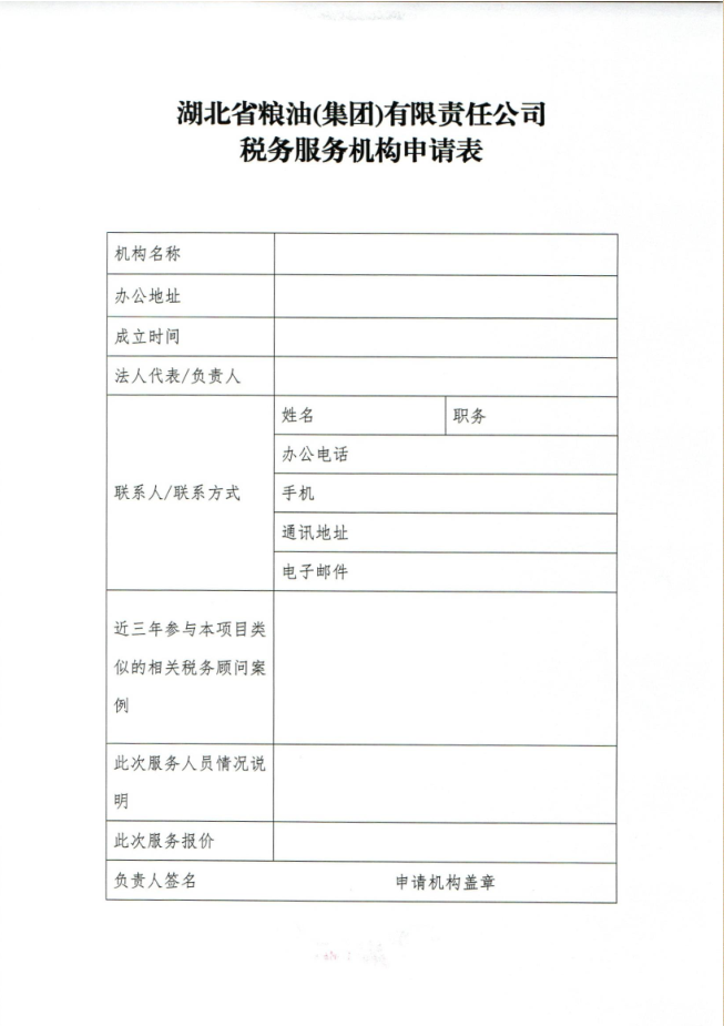 湖北省糧油(集團)有限責任公司關(guān)于公開征集稅務(wù)顧問服務(wù)的公告