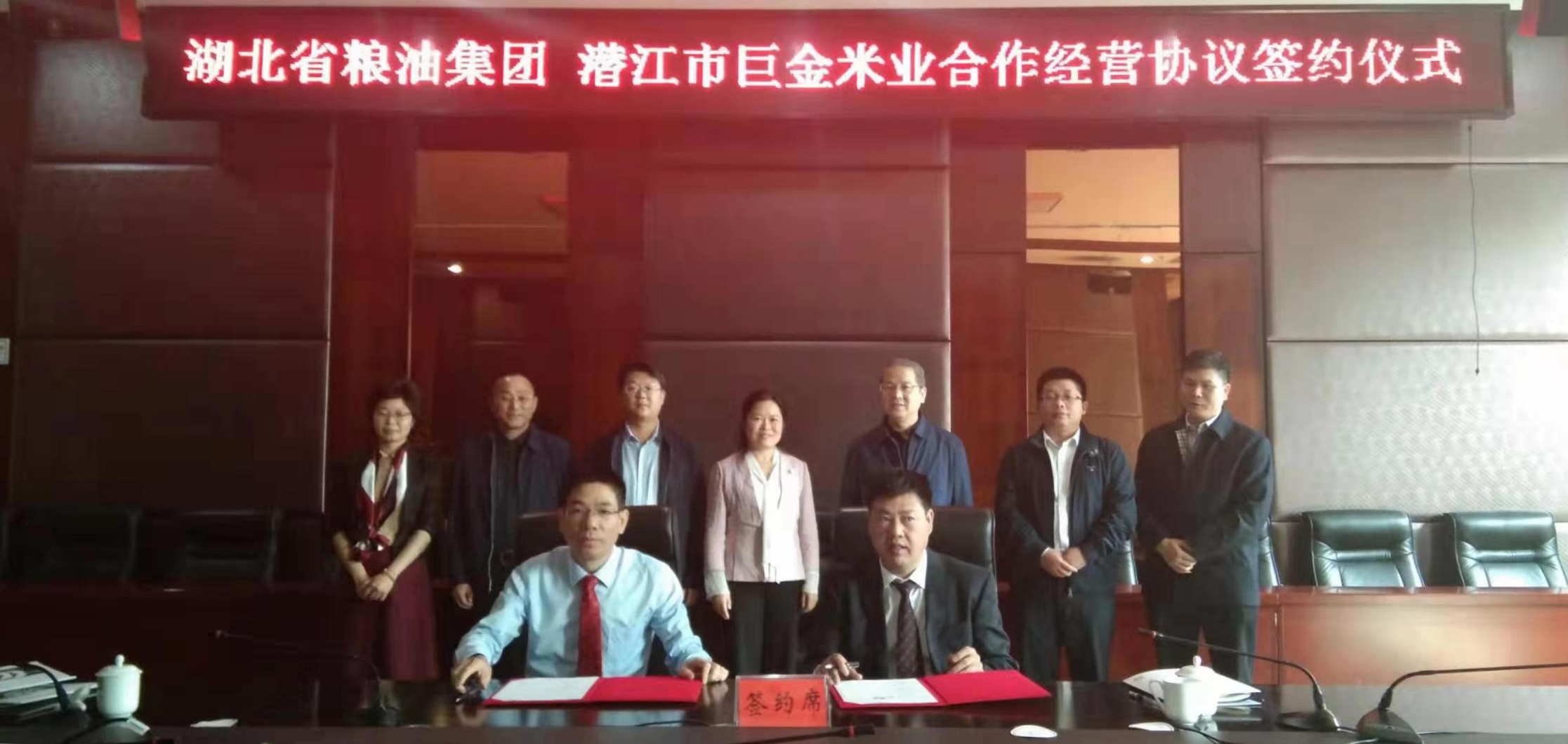 11月8日,湖北省糧油集團(tuán)旗下鑫果匯公司與潛江市巨金米業(yè)有限公司在潛江市七喜國際大酒店舉行戰(zhàn)略合作簽約儀式,潛江市委副書記舒敏,湖北省糧油集團(tuán)黨委副書記、總經(jīng)理?xiàng)罱ò渤鱿灱s儀式。